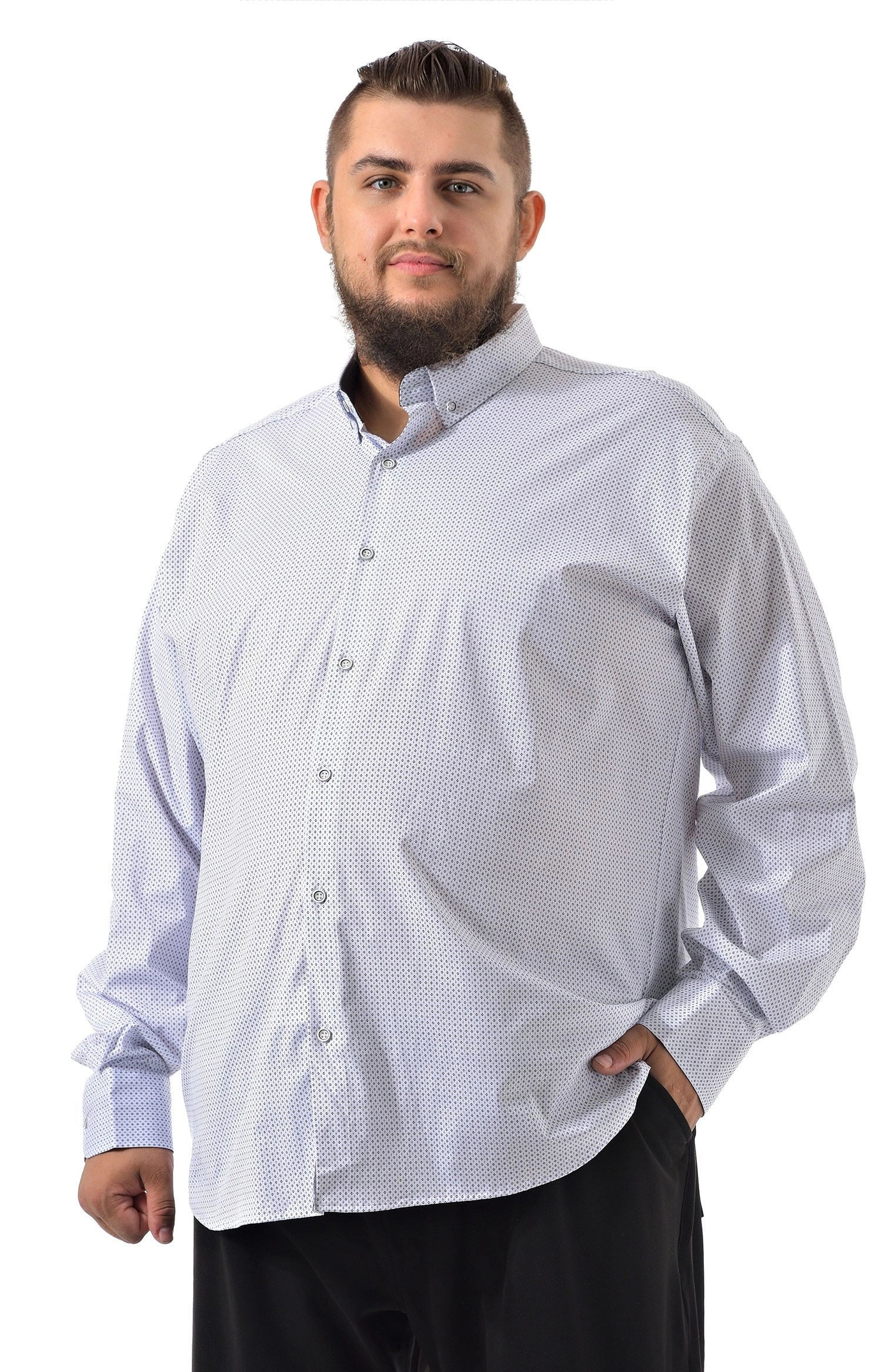 Мужская рубашка белого цвета с рисунком. Модель с лайкрой в составе, что делает ее более эластичной и комфортной.. Манжет под пуговицу