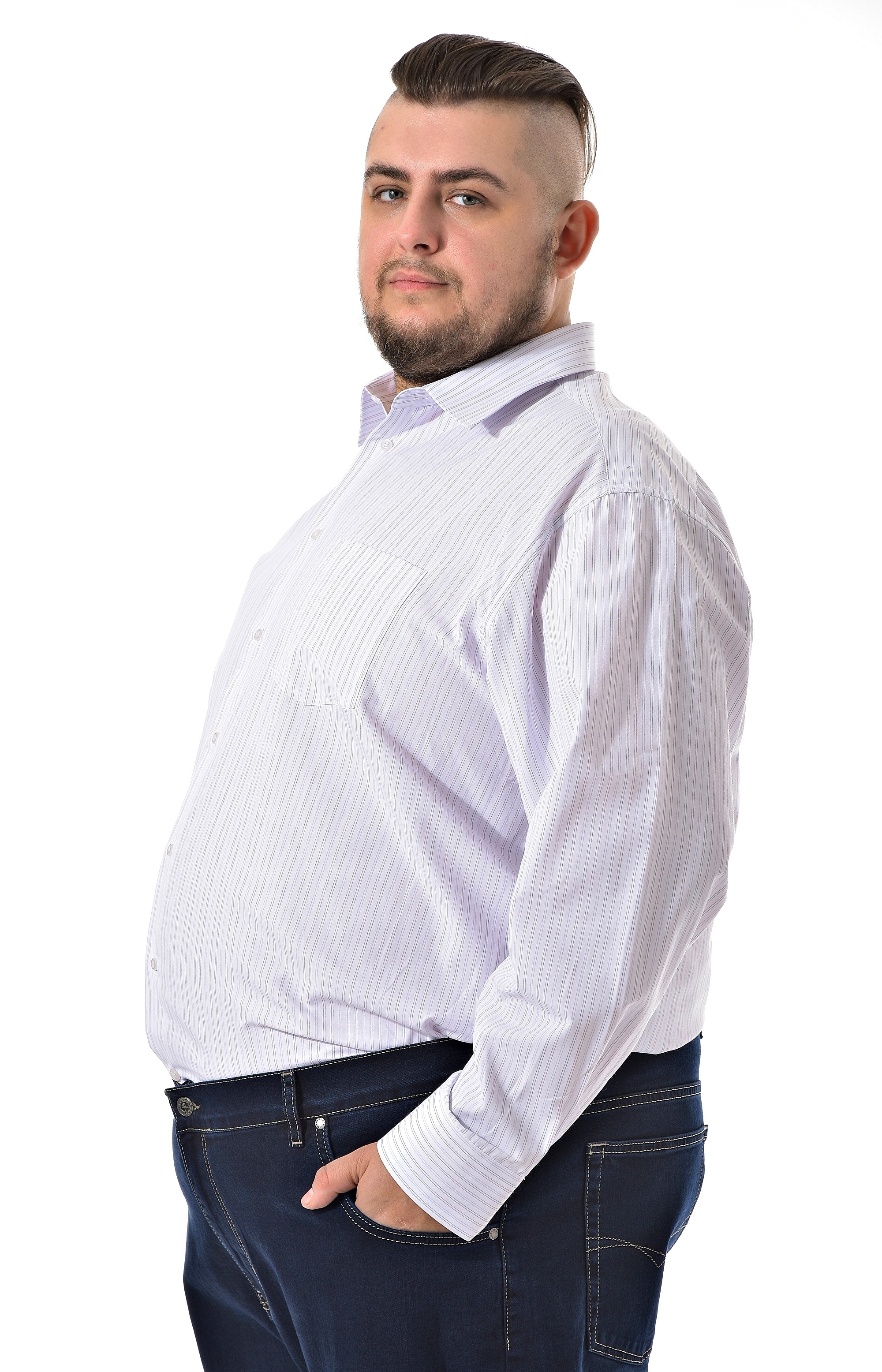 Мужская рубашка c длинным рукавом Pierre Lauren белого цвета в мелкую полоску. Манжеты под пуговицу, один накладной карман на груди Полноразмерная модель на высокий рост. Воротник классический острый на одну пуговицу.