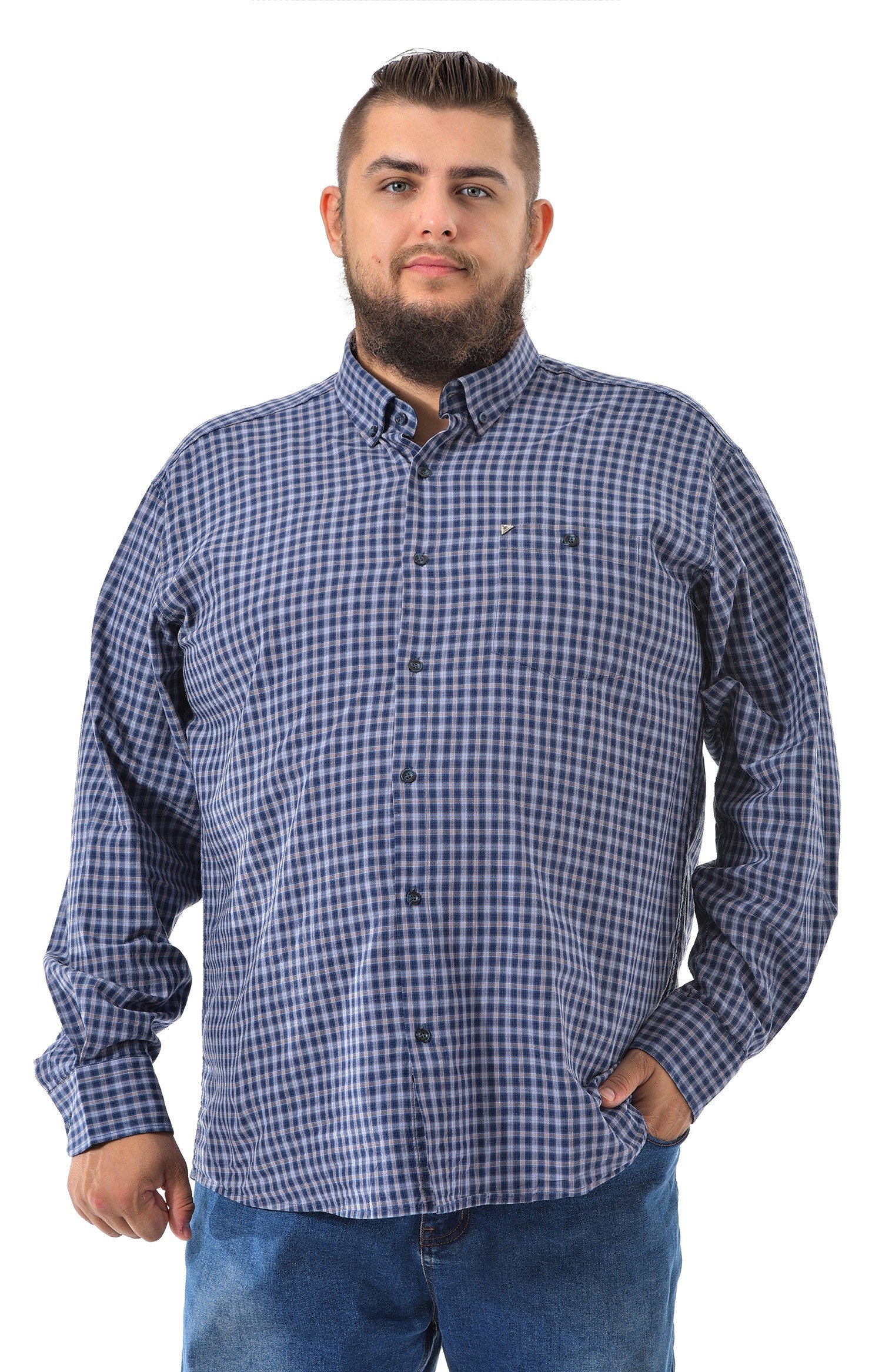 Мужская рубашка от бренда Birindelli - это качественный крой, натуральные материалы. Цвет изделия синий и голубая клетка. Длинный рукав с манжетами на пуговицах. На груди накладной карман на пуговице. На рубашке отложной воротничок. Ткань 100% хлопок. Центральная застёжка на пуговицы. Это базовая модель, её можно сочетать с разными предметами гардероба.