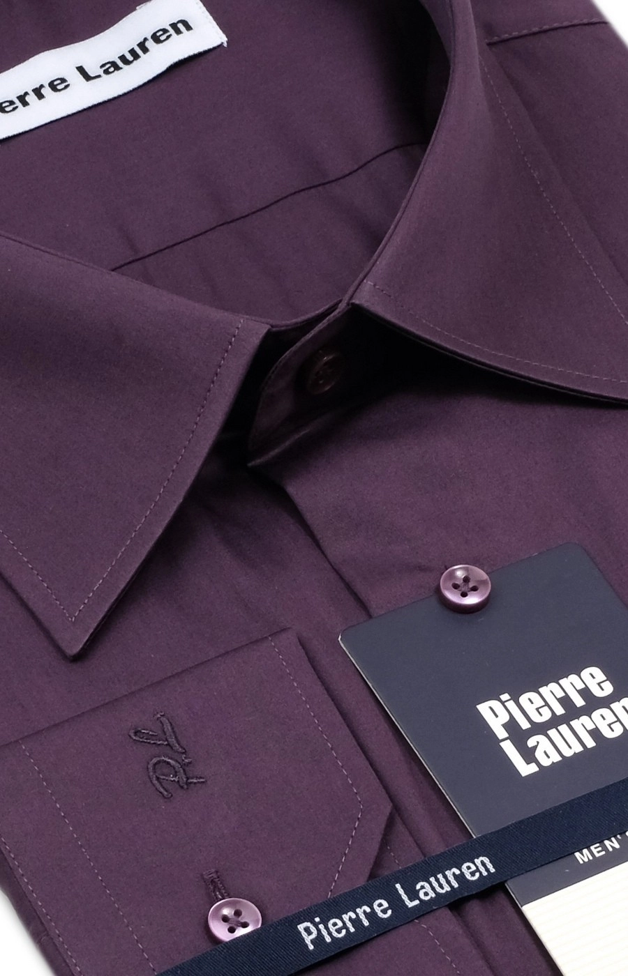 Мужская рубашка c длинным рукавом Pierre Lauren фиолетового цвета. Манжеты под пуговицу, один накладной карман на груди Полноразмерная модель на высокий рост. Воротник классический острый на одну пуговицу.