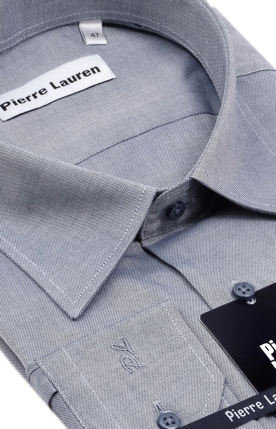 Мужская рубашка c длинным рукавом Pierre Lauren серого цвета. Манжеты под пуговицу, один накладной карман на груди Полноразмерная модель на высокий рост. Воротник классический острый на одну пуговицу.