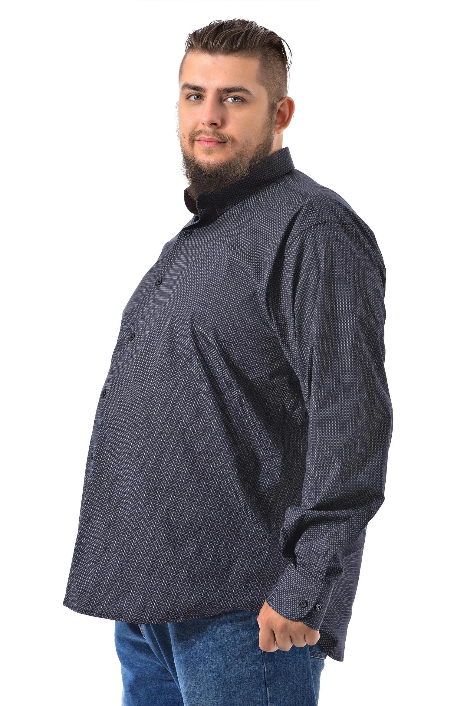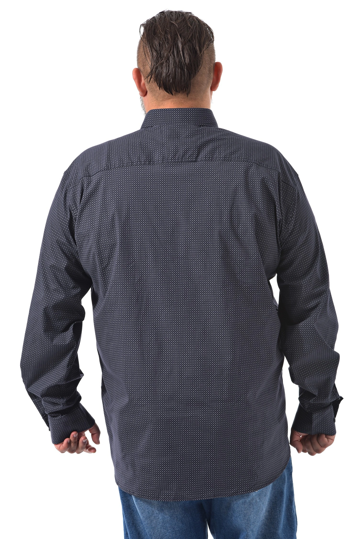 Мужская рубашка темно синего цвета с рисунком. Модель с лайкрой в составе, что делает ее более эластичной и комфортной.. Манжет под пуговицу