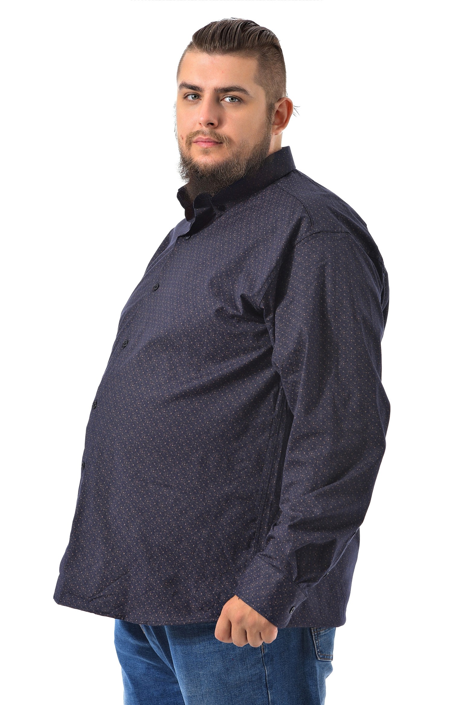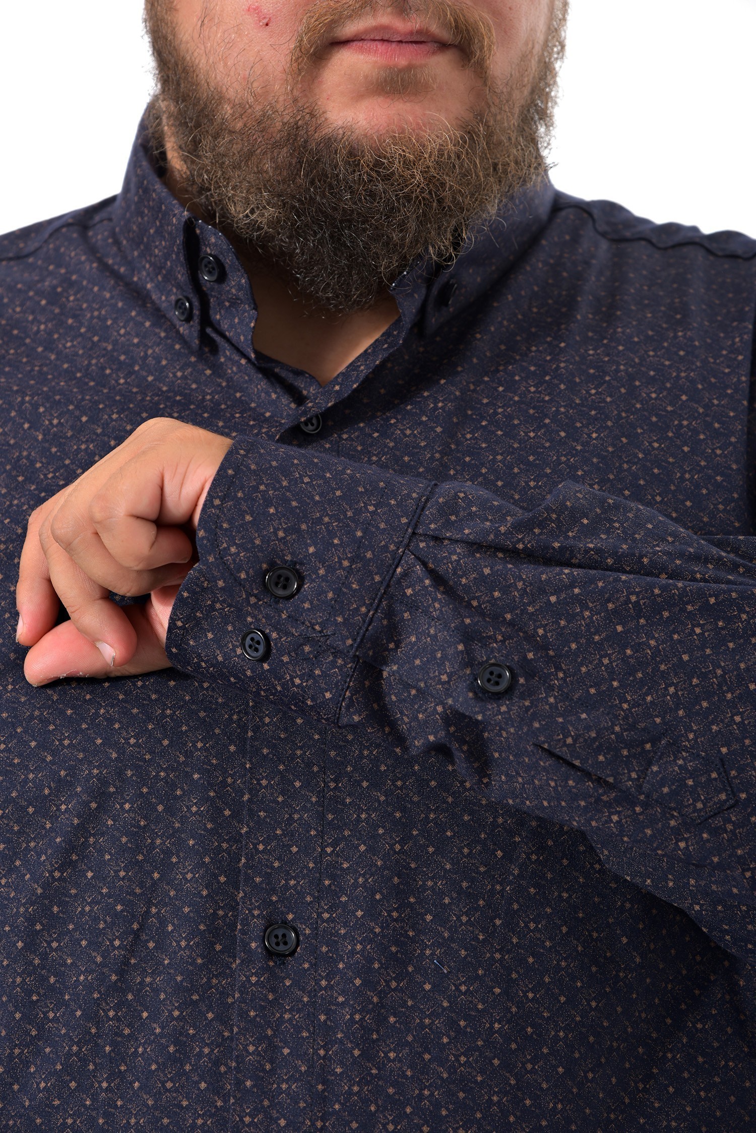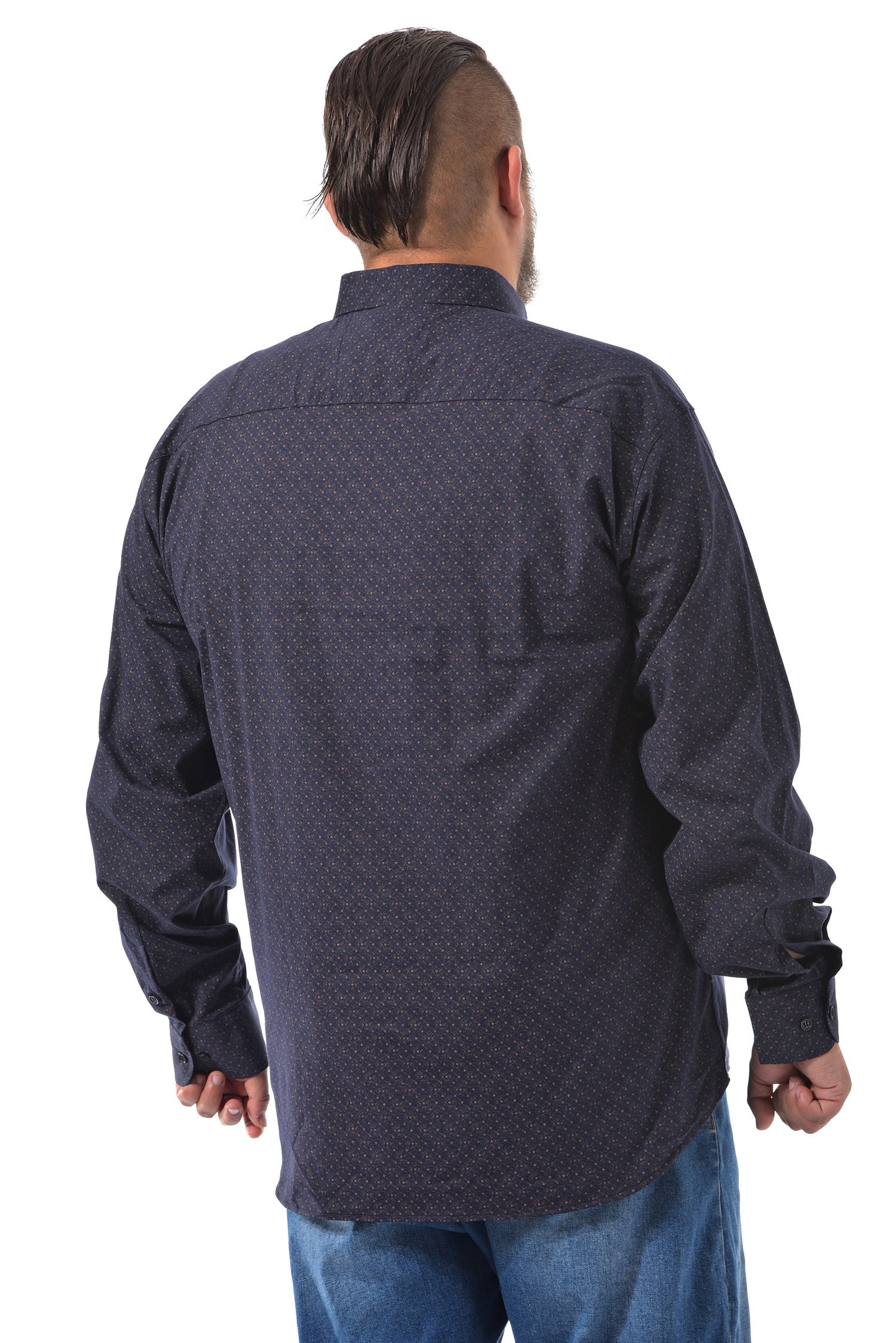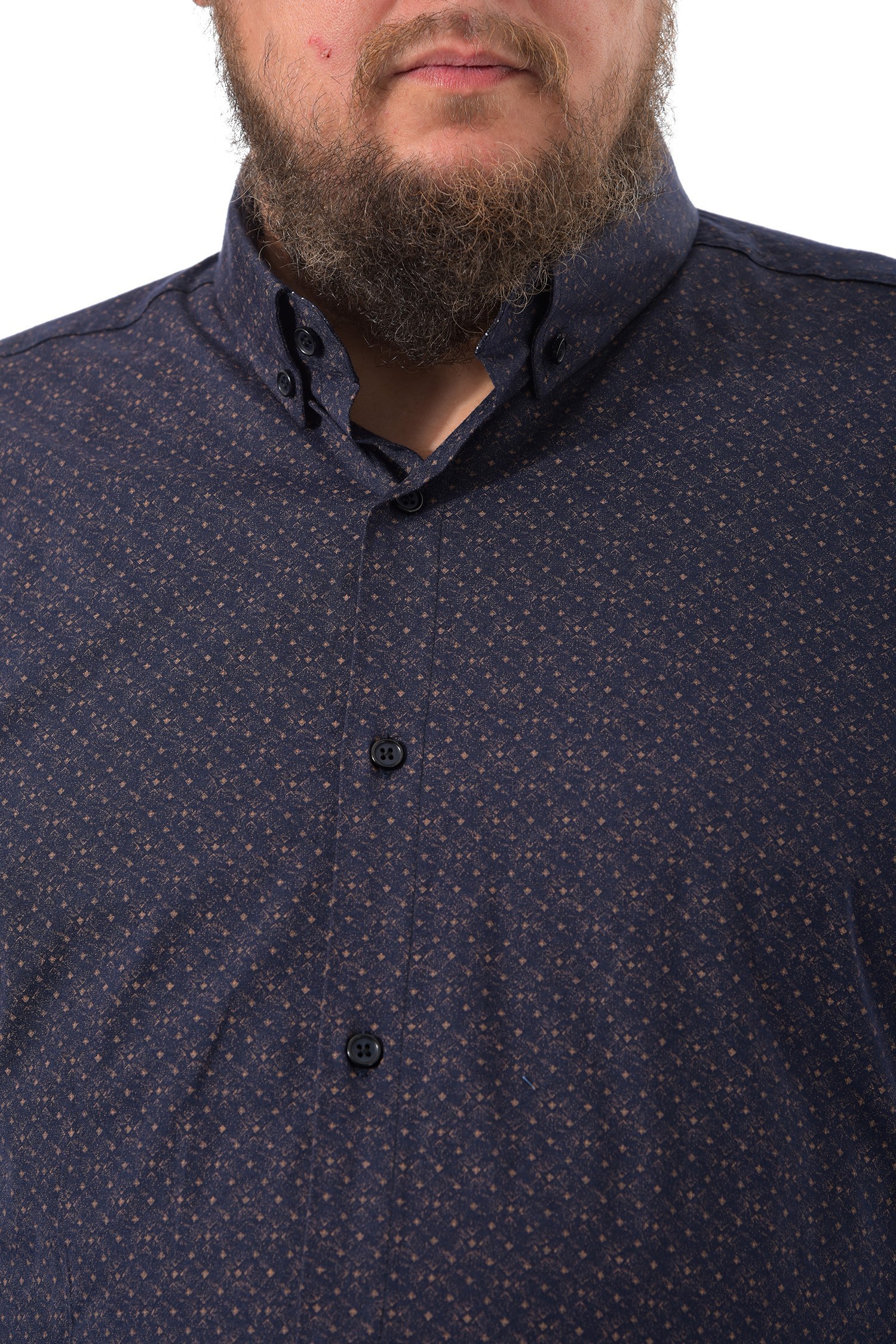 Мужская рубашка темно синего цвета с рисунком. Модель с лайкрой в составе, что делает ее более эластичной и комфортной.. Манжет под пуговицу