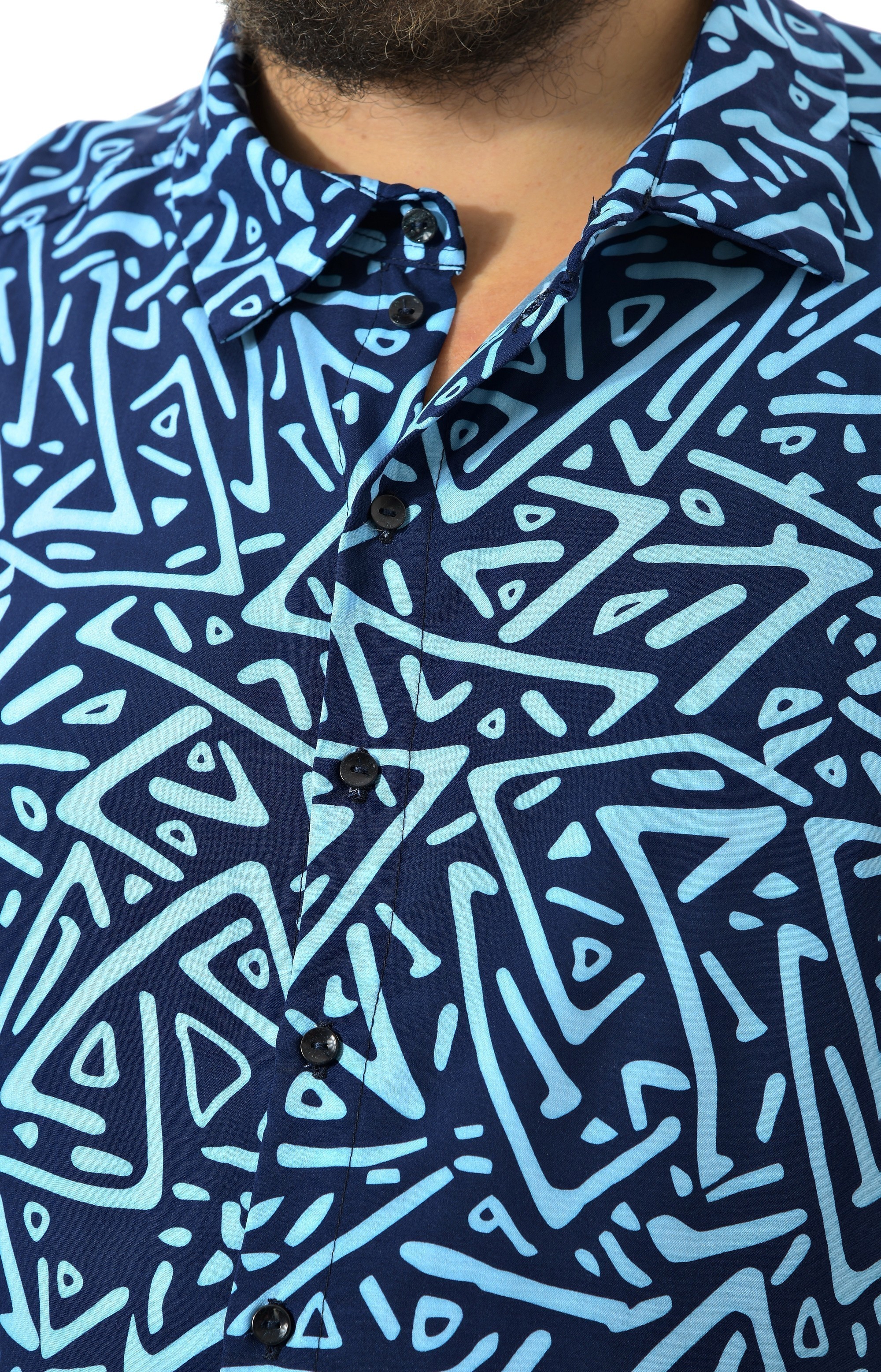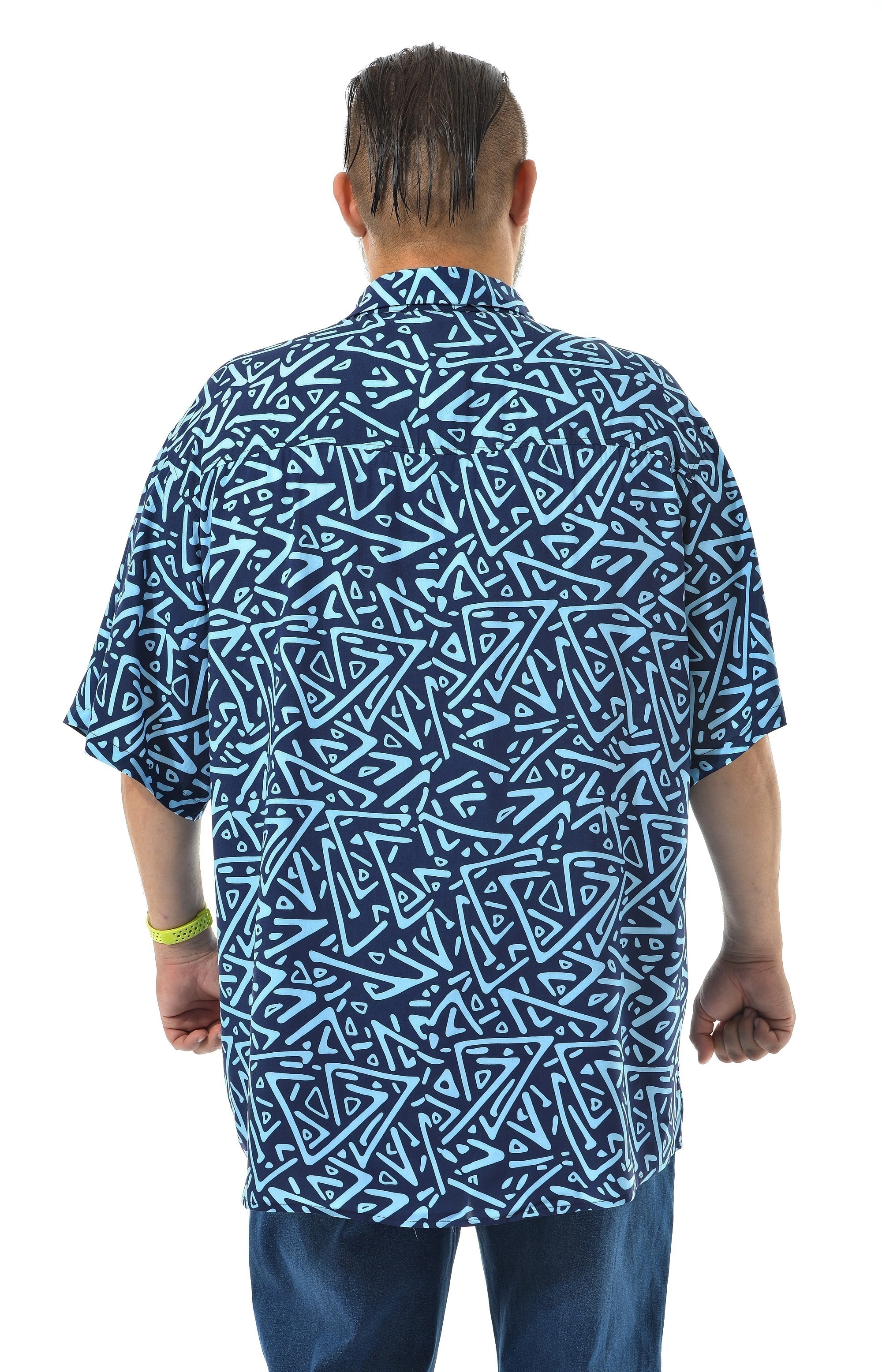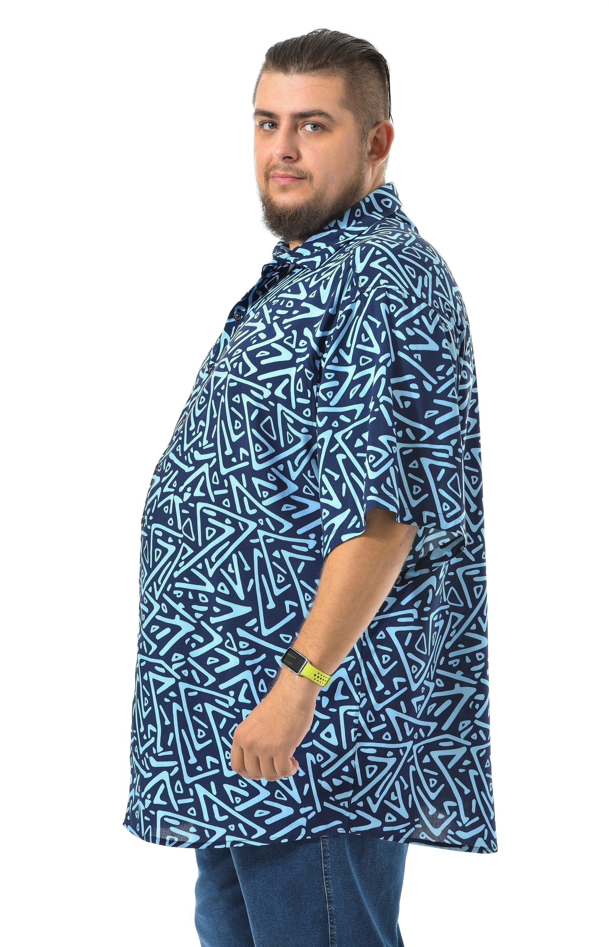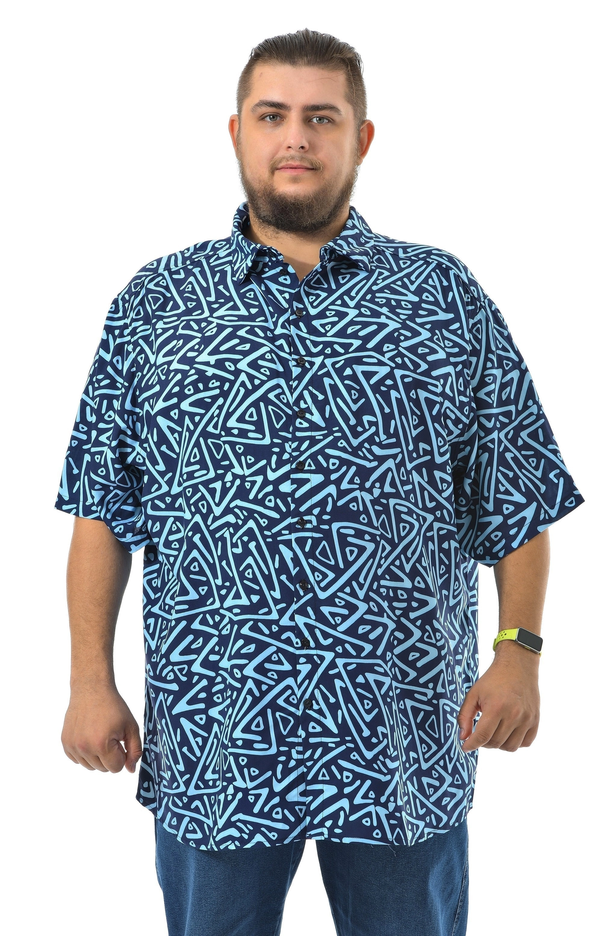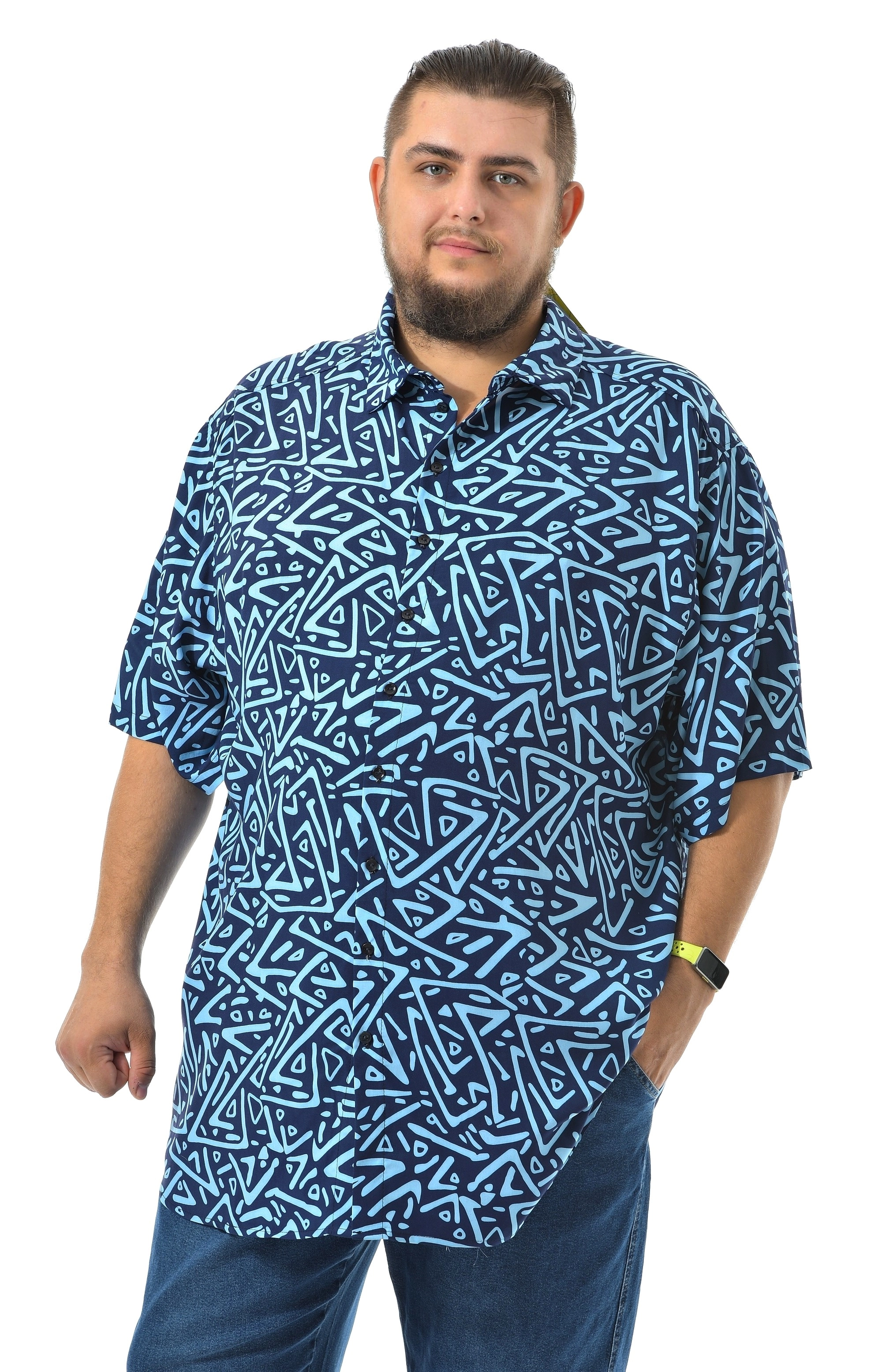 Мужская рубашка из штапеля по типу "гавайка". Синий основной фон. Застежка на пуговицы