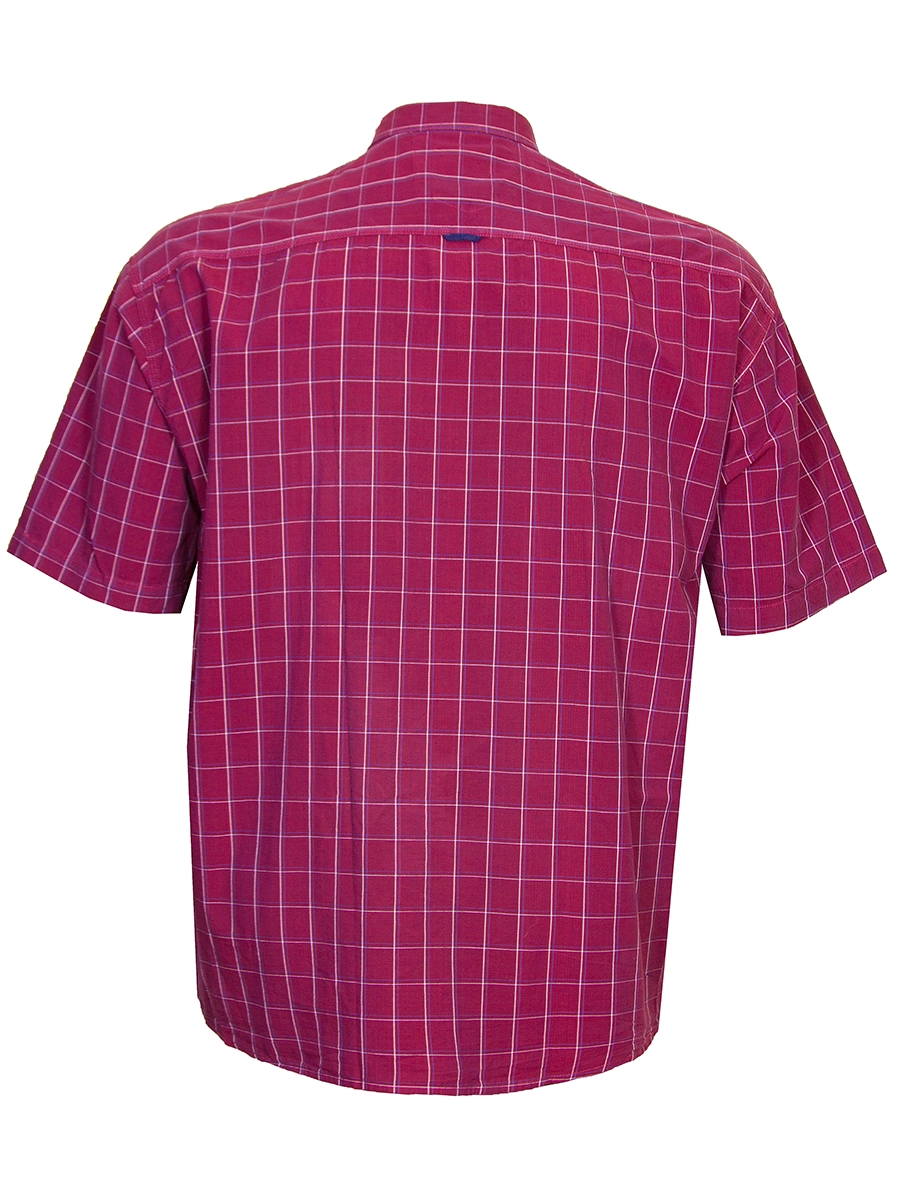 Мужская рубашка бордового цвета в крупную клетку. Карман на груди. Фирменные пуговицы. Размер по вороту