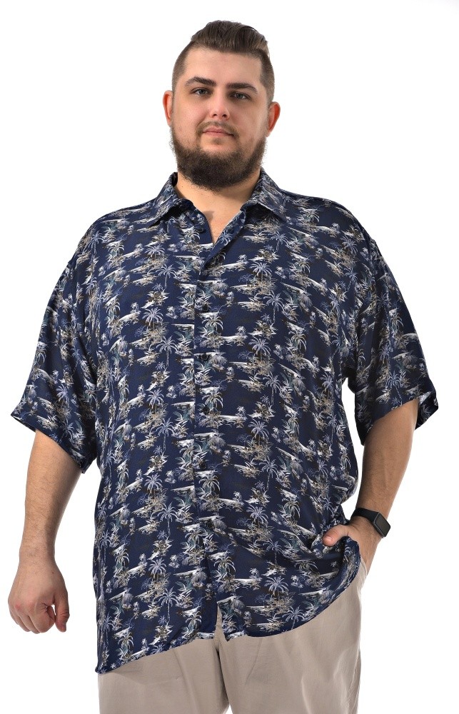 Мужская льняная рубашка голубого цвета. Один карман на груди. Воротник и карман фиксируется на пуговицы.