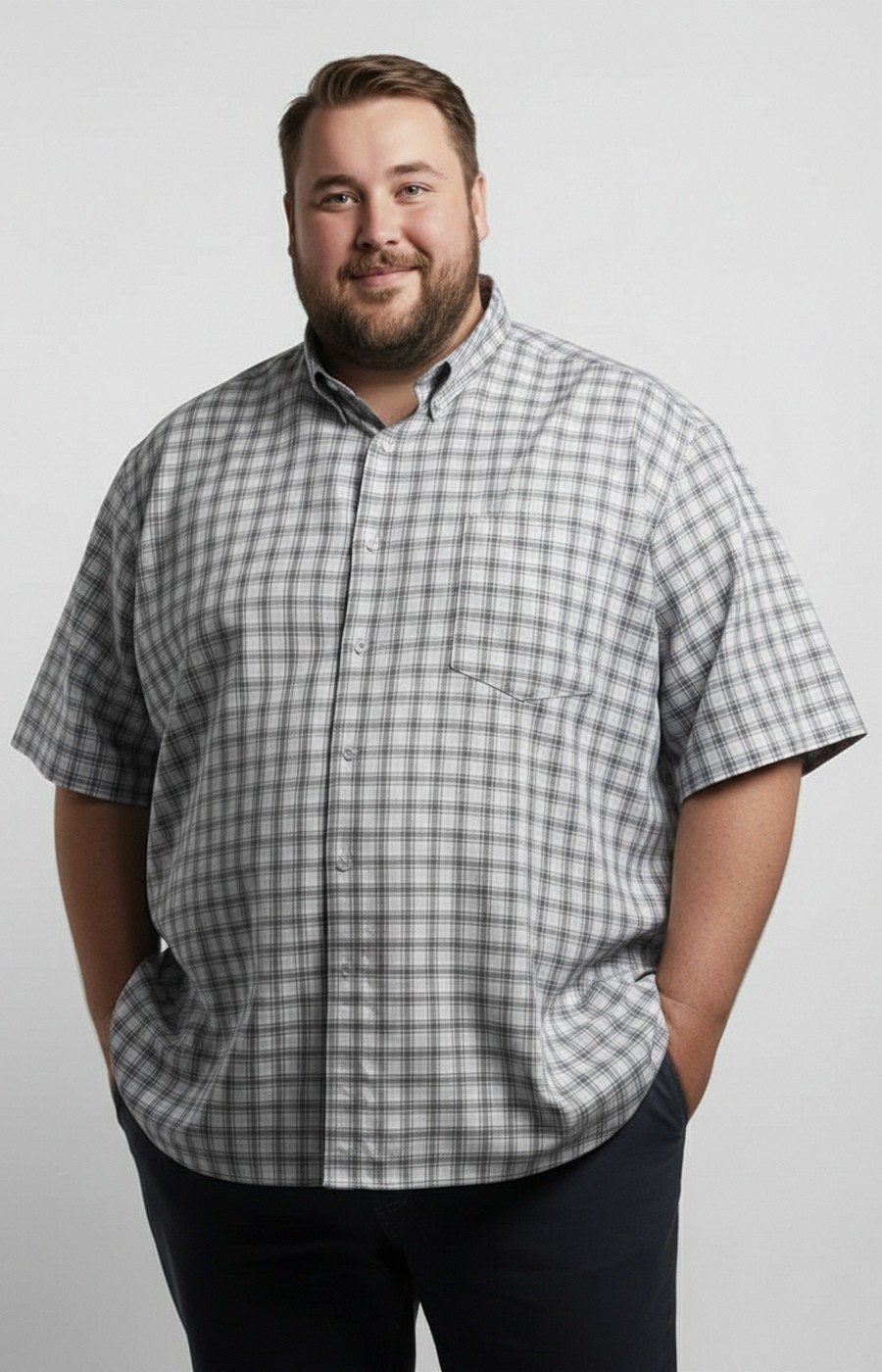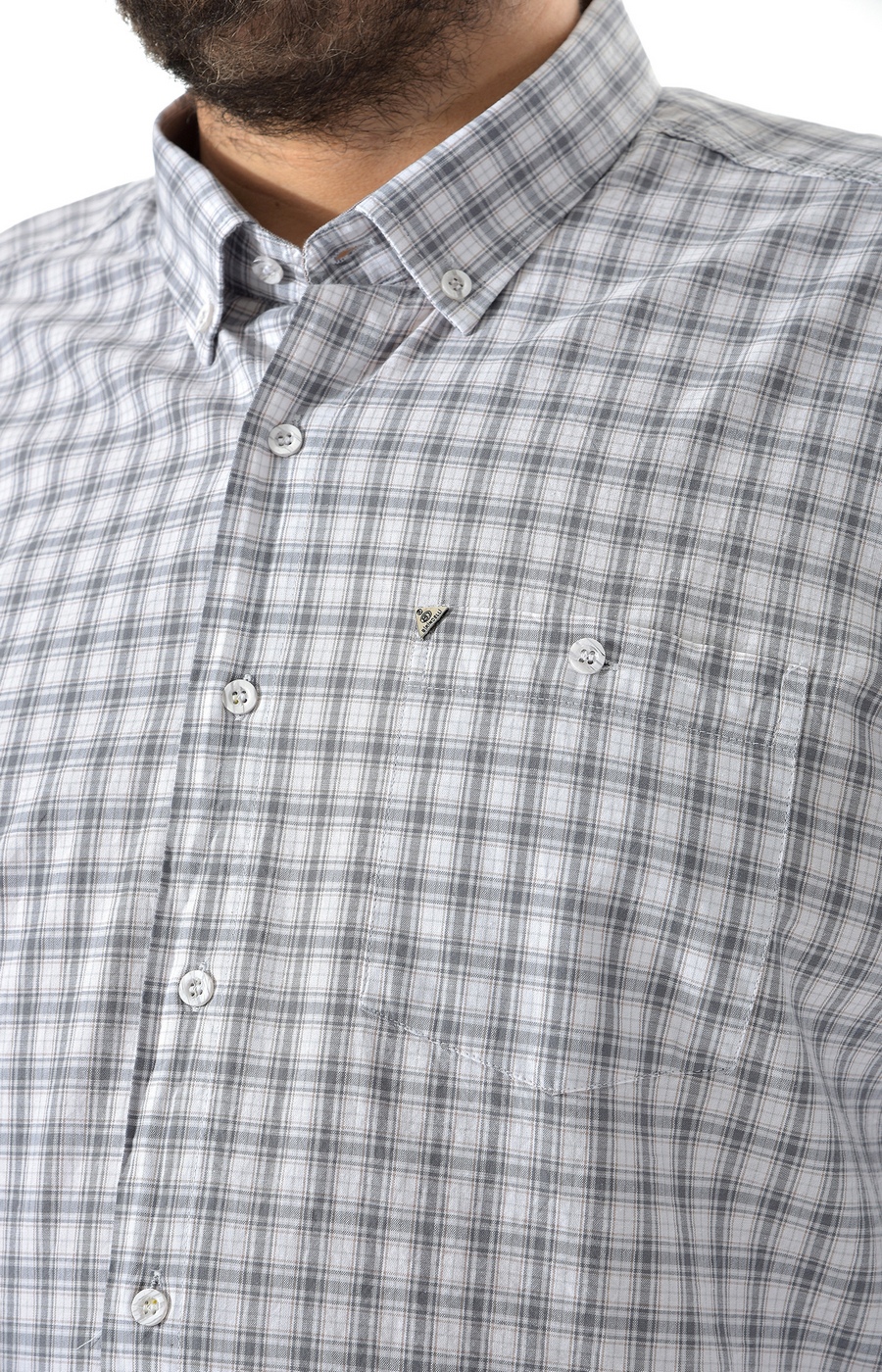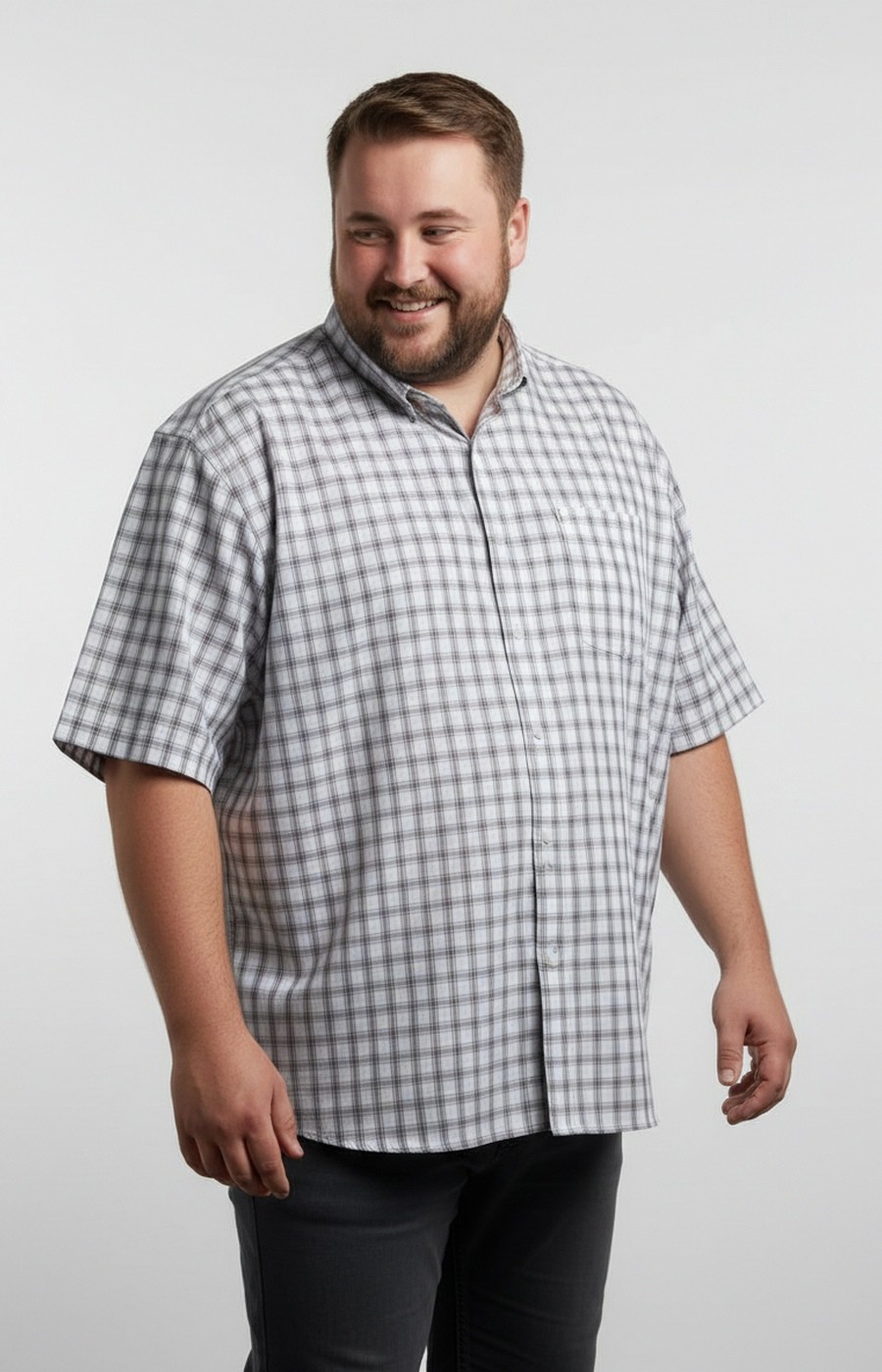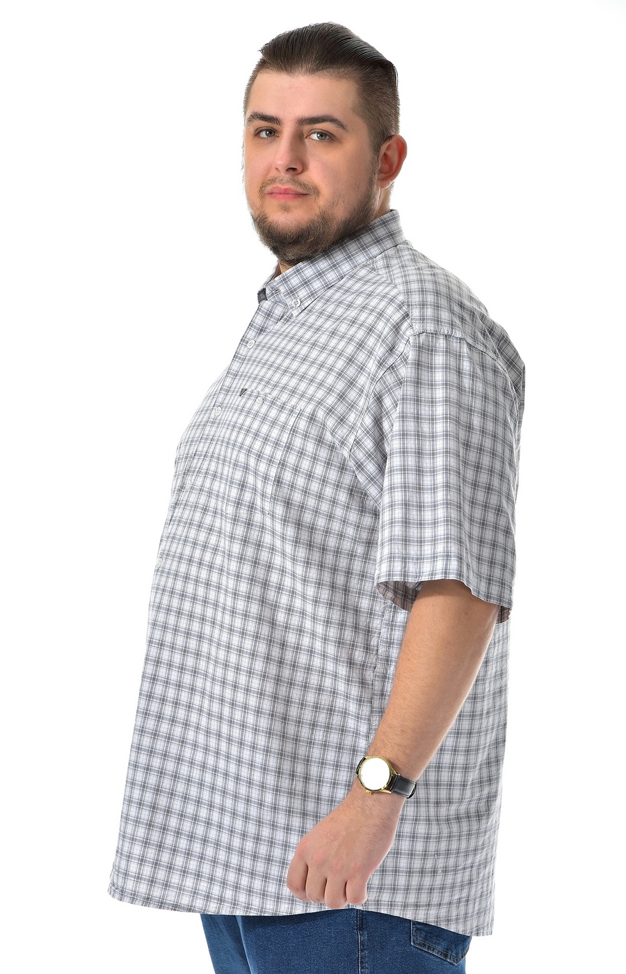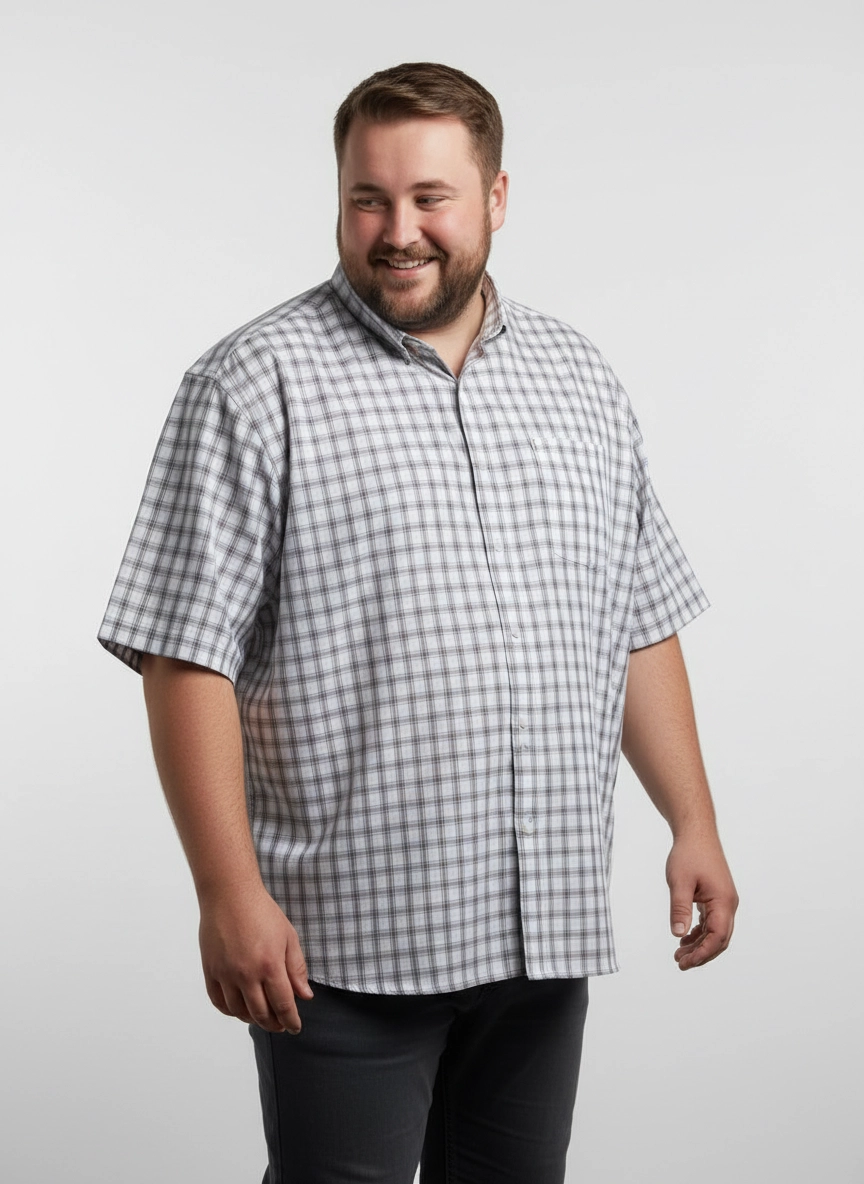 Мужская рубашка хлопковая в бежевую клетку — практичный вариант для повседневных образов. Прямой свободный крой не стесняет движений, длина до середины бедра обеспечивает комфортную посадку в любой ситуации. Короткий рукав и классическая застёжка на пуговицы по центру формируют лаконичный дизайн без лишних деталей. Мелкий клетчатый принт в бежево-серых тонах легко сочетается с однотонными джинсами и брюками. Воротник на пуговице собирает образ для города или отдыха. Нагрудный карман добавляет функциональность. Гладкая хлопковая ткань приятна к телу и подходит для ношения в тёплое время. Рубашка актуальна для прогулок, встреч или домашнего комфорта. Подберём размер по вашим параметрам и организуем доставку удобным для вас способом.