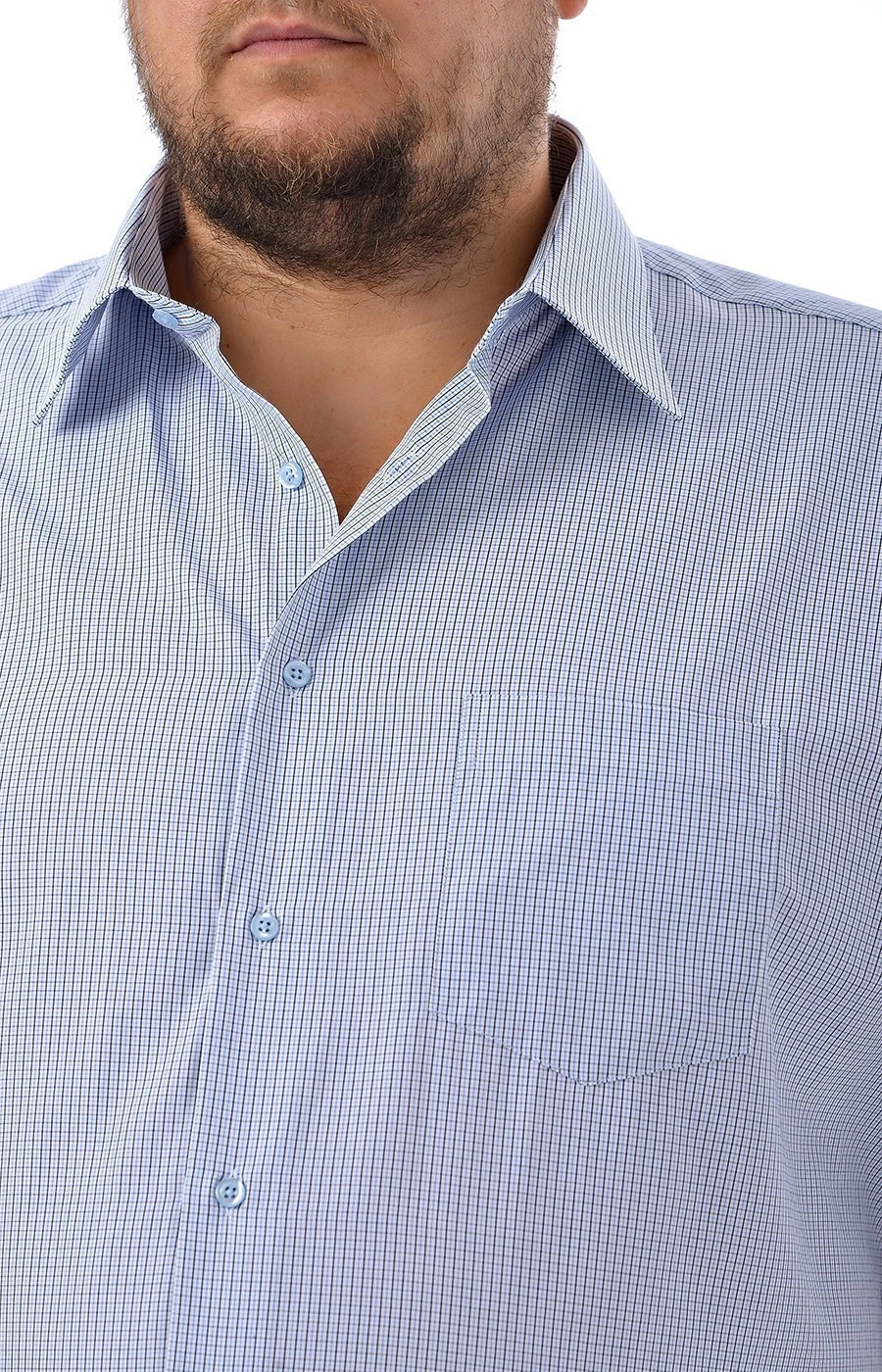 Мужская синяя рубашка больших размеров Pierre Lauren — классическая офисная сорочка с коротким рукавом из хлопковой ткани (80% хлопок, 20% полиэстер). Деловая рубашка из приятной высококачественной ткани обеспечивает комфорт для делового и повседневного стиля. Синий цвет — универсальный оттенок для офиса и business casual.