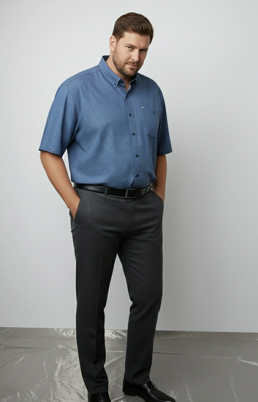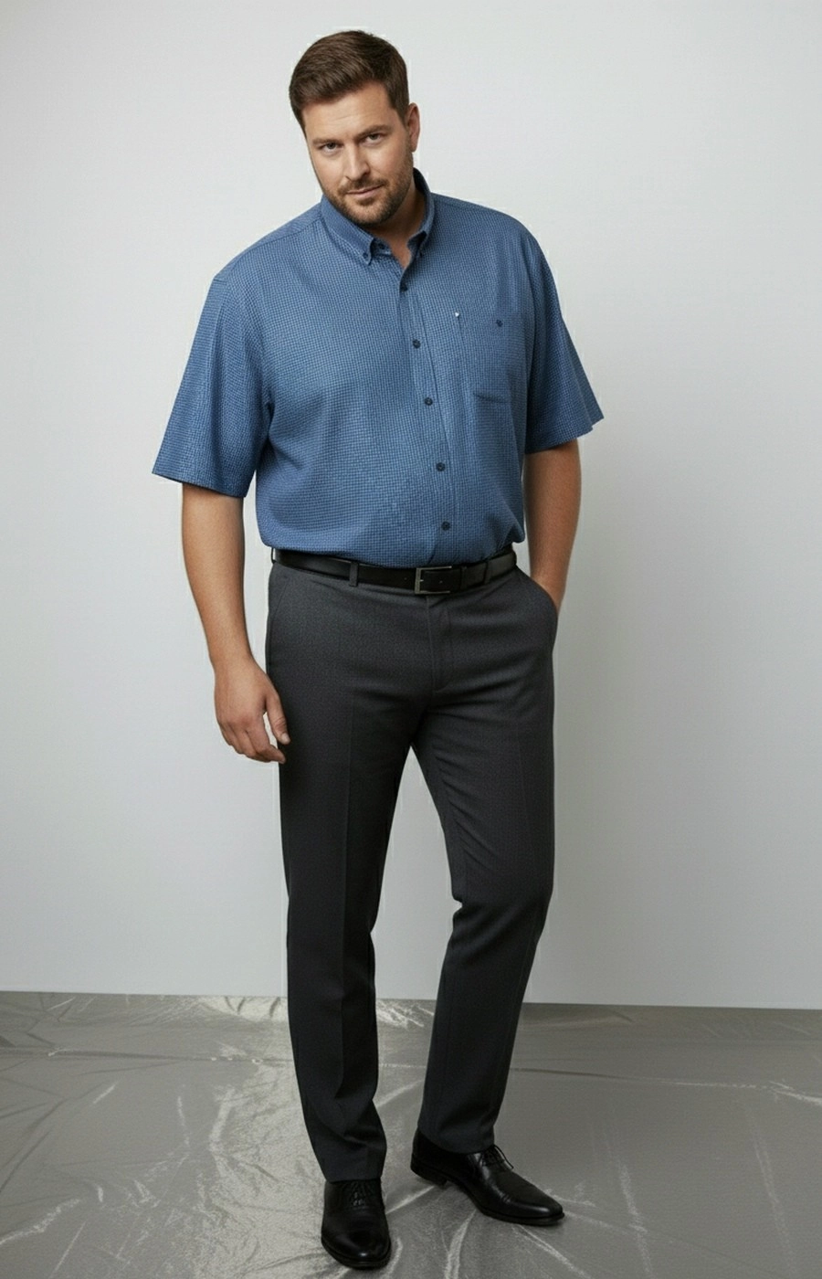 Мужская рубашка синяя в клетку с button-down воротником — универсальная вещь для повседневных образов. Прямой силуэт не стесняет движений, посадка свободная и комфортная для любого телосложения. Застежка на пуговицы по всей длине планки, манжеты также фиксируются пуговицами. Мелкий рисунок клетки в сине-голубой гамме выглядит аккуратно, легко сочетается с джинсами и брюками. Воротник с пуговицами на уголках держит форму, придает образу собранность. Ткань гладкая на вид, рубашка подходит для города, офиса и повседневных выходов. Размер рассчитан на мужчин plus-size. Если нужна консультация по посадке или размеру под ваши параметры — пишите, подскажем до заказа. Отправляем удобным для вас способом.