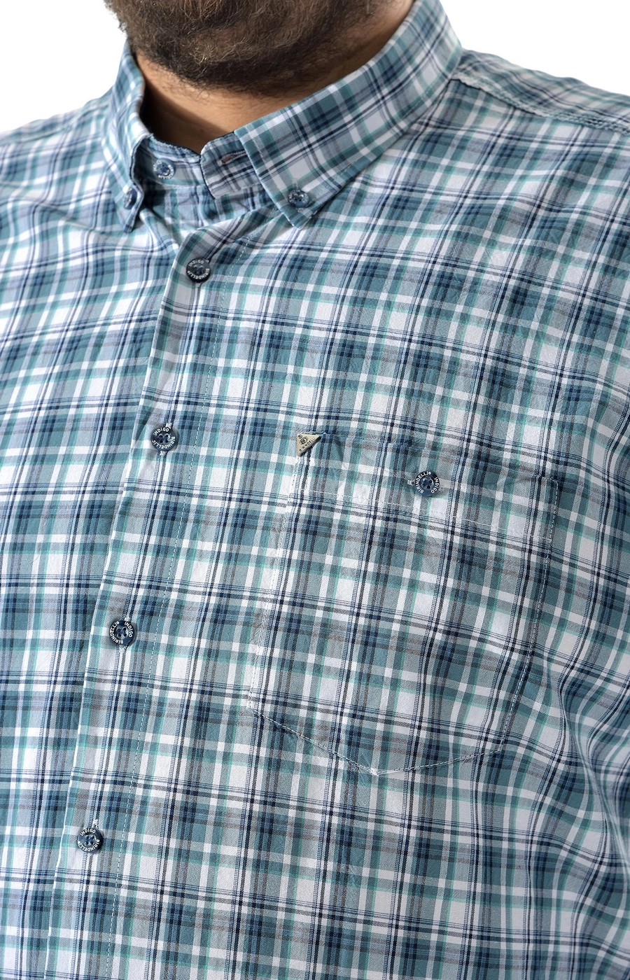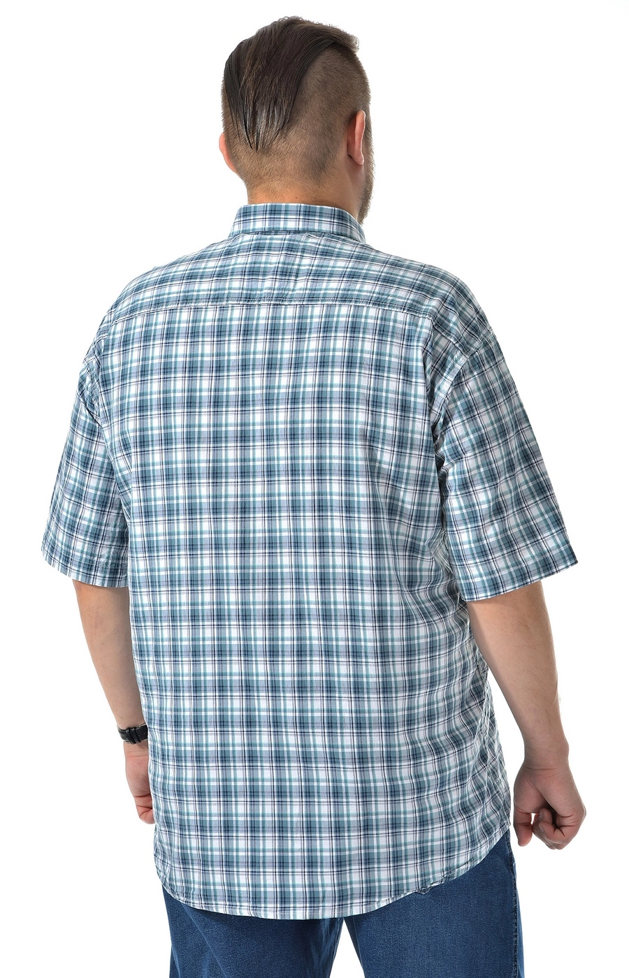 Мужская рубашка в зеленую клетку — практичная рубашка больших размеров для аккуратного повседневного образа. Рубашка с коротким рукавом выполнена в прямом свободном крое и по кадру закрывает линию бедра. Классический отложной воротник и центральная планка с пуговицами дают надежную фиксацию и собранный вид. Клетчатый рисунок в зелено‑белой гамме и гладкая фактура легко сочетаются с джинсами и повседневными брюками для города, дома и отдыха. Перед заказом поможем подобрать размер и посадку по вашим параметрам, доставим удобным способом — напишите, и вместе спокойно доведем выбор до точного попадания.