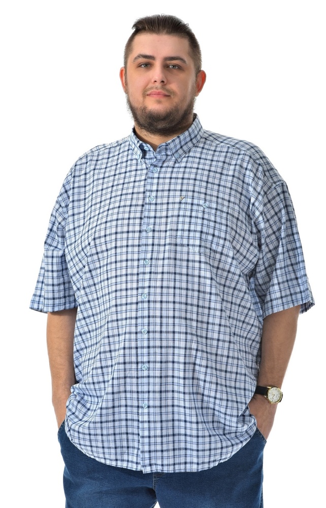 Классическая однотонная синяя рубашка. Самая популярная модель. Отличный крой. Удлиненная с большими проймами. На большой живот. Идеальная посадка. Один нагрудный карман.
