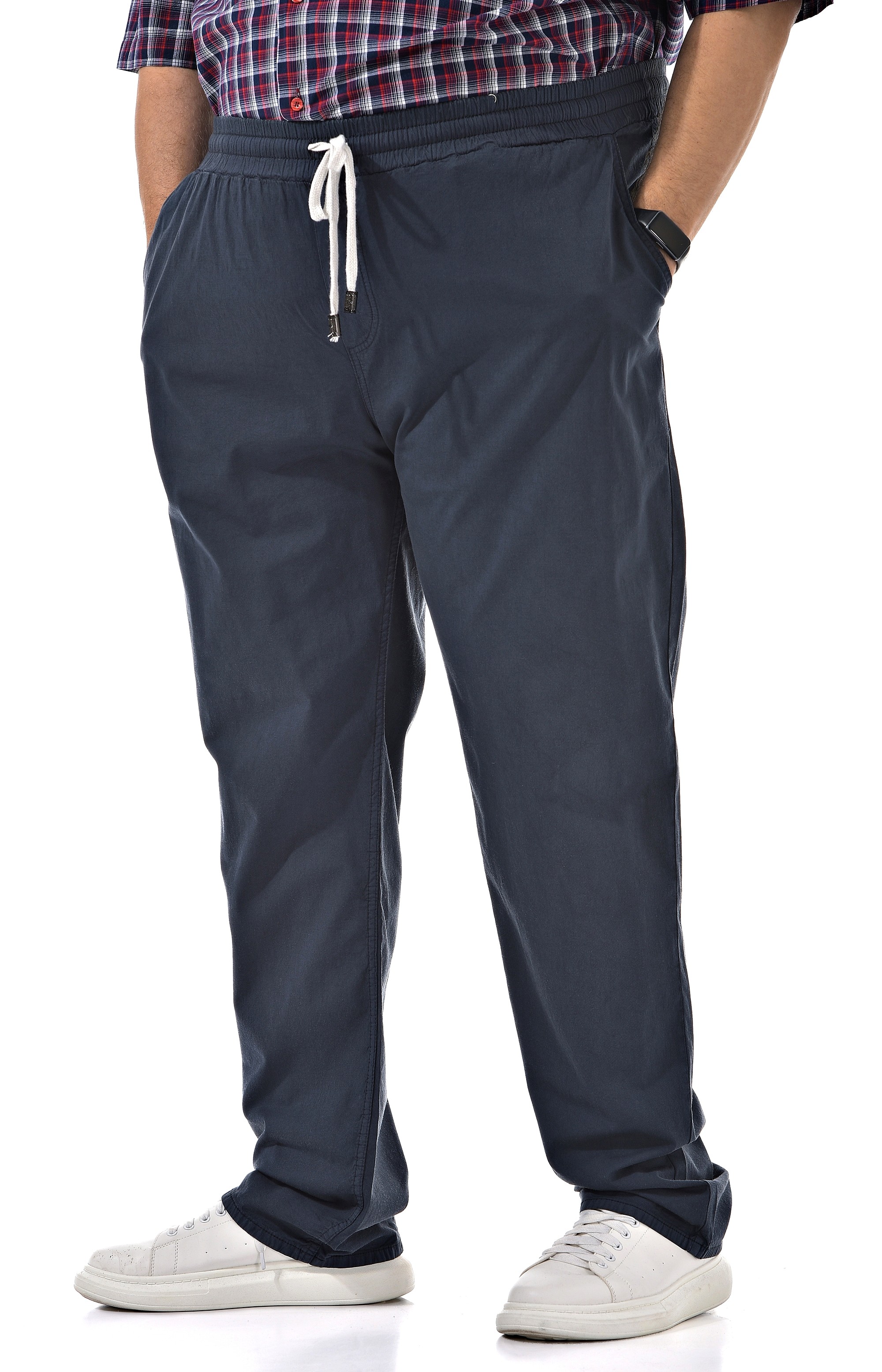 Темно-синие габардиновые брюки прямого свободного кроя с комфортной посадкой на талии подойдут для повседневных образов и отдыха. Однотонная модель с эластичным поясом и шнурком-кулиской фиксируется мягко и надежно, не стесняя движений в течение дня. Длина по кадру полная, штанины опускаются до обуви и образуют аккуратную линию по низу. Плотный, но пластичный текстиль в насыщенном темно-синем оттенке выглядит лаконично и легко комбинируется с базовыми футболками и рубашками. Если нужен совет по размеру и посадке, подскажем по вашим параметрам и организуем доставку удобным для вас способом.