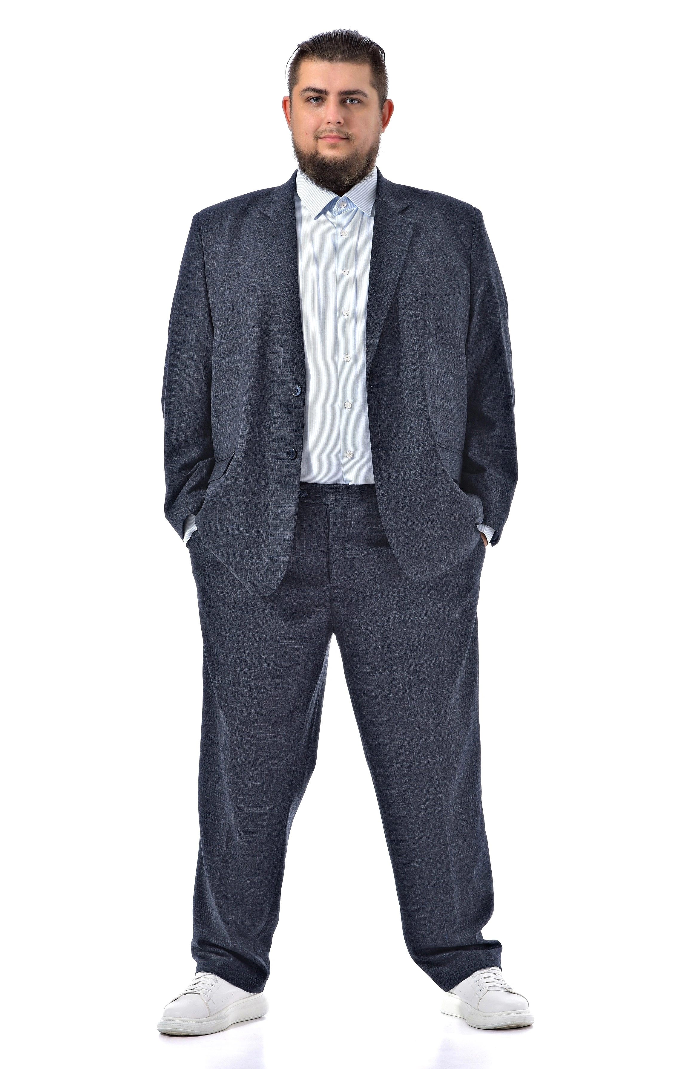 Классические костюмные брюки Servus выполнены в темно-синем цвете из приятной к телу ткани с добавлением вискозы. Прямой крой и застёжка на молнии делают модель практичной и удобной в носке. Посадка ниже линии живота обеспечивает комфорт для мужчин крупных размеров, а качественная ткань держит форму и сохраняет презентабельный вид в течение дня. Брюки легко комбинируются с рубашкой или пиджаком, создавая строгий деловой образ. В каталоге «Большие люди» представлен большой выбор классических брюк разных фасонов. Купить брюки большого размера можно у нас, выбрав модель до 76 размера.