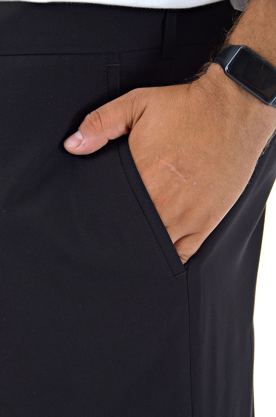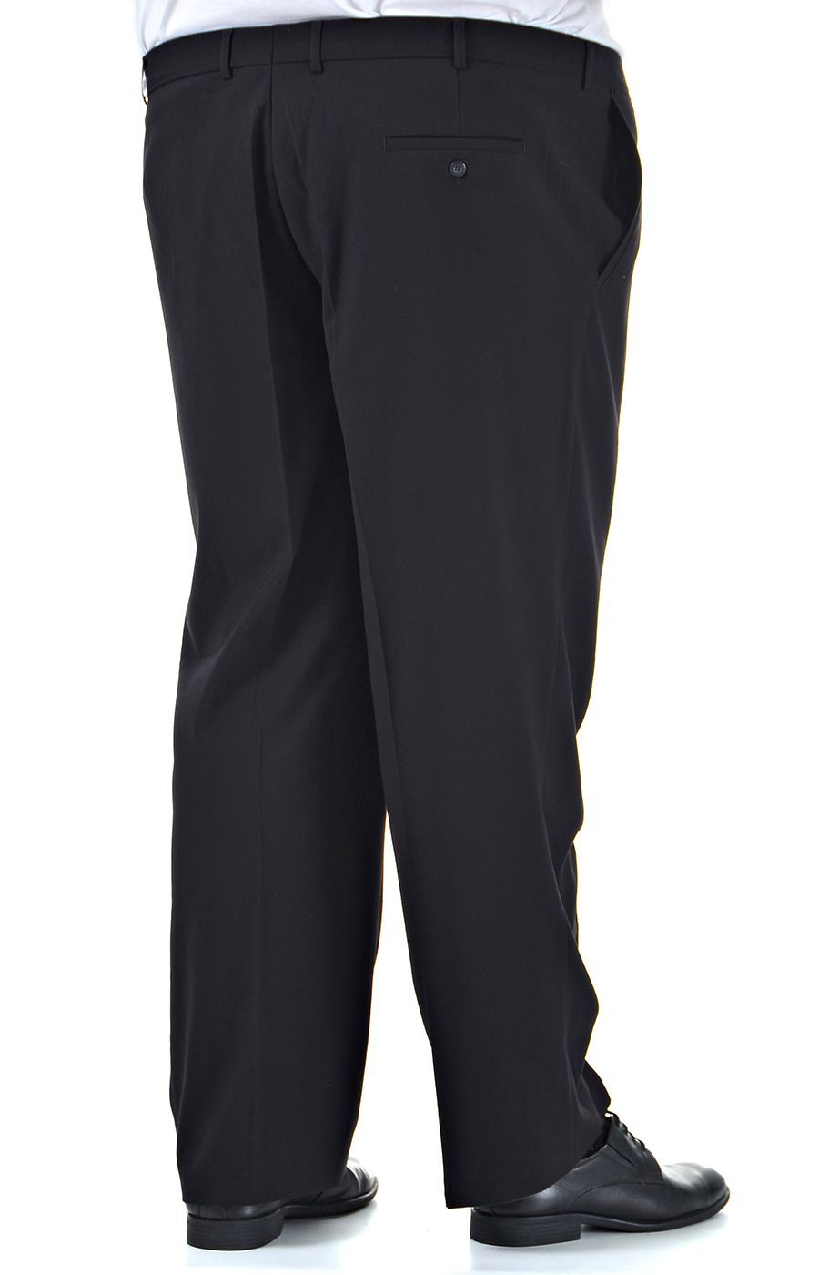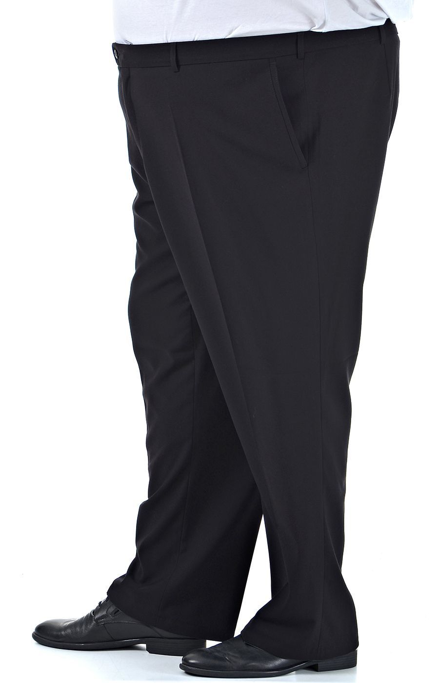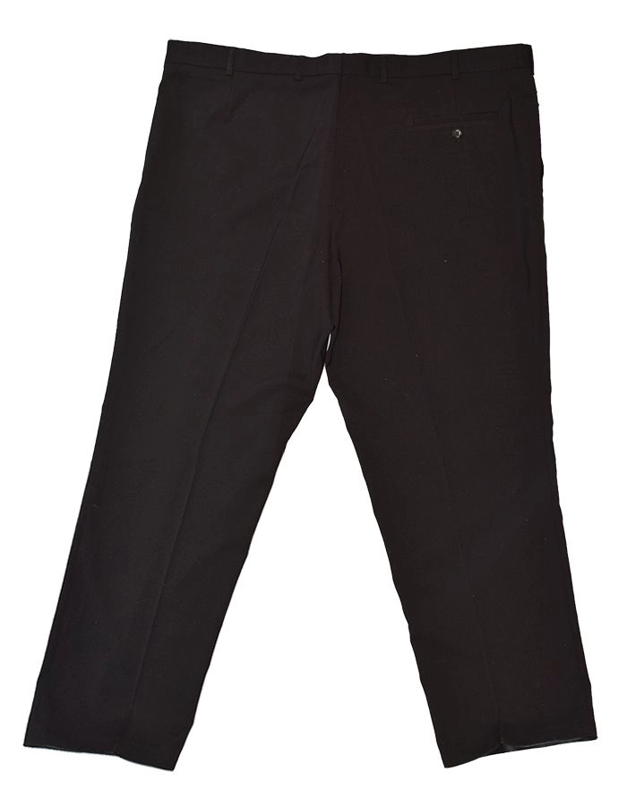 Классические брюки черного цвета отечественного производства. Модель имеет два кармана по бокам, и один карман на пуговице сзади. Прямые мужские брюки со стрелками это - базовая одежда, которая отлично подойдёт под любой случай любой стиль. Низ брюк обработан тесьмой. Посадка брюк - под живот.