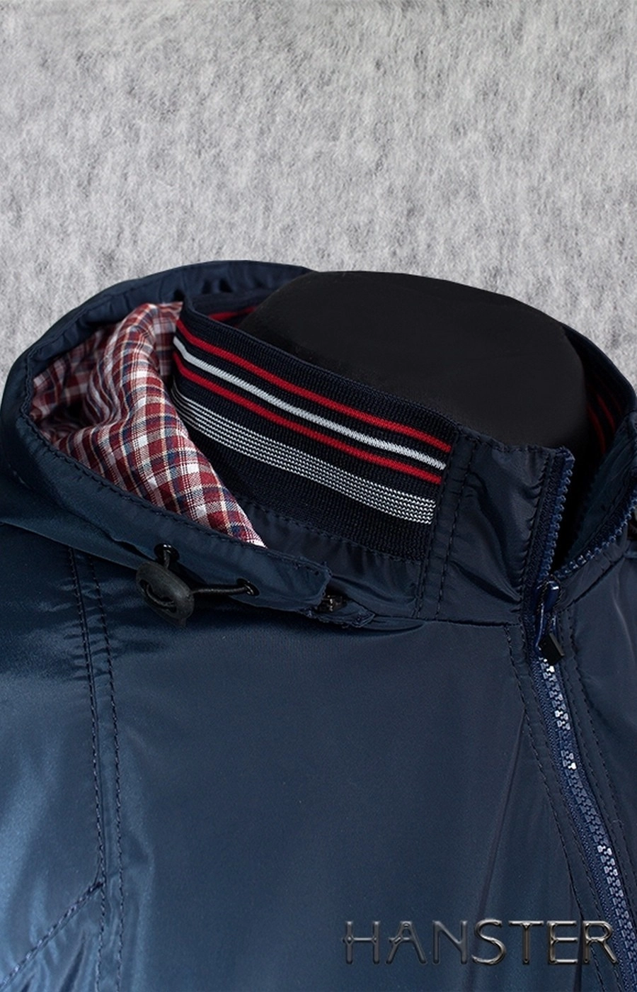 Демисезонная куртка на резинке. Красивый синий цвет. Контрастная отделка капюшона, карманов и манжет на рукавах