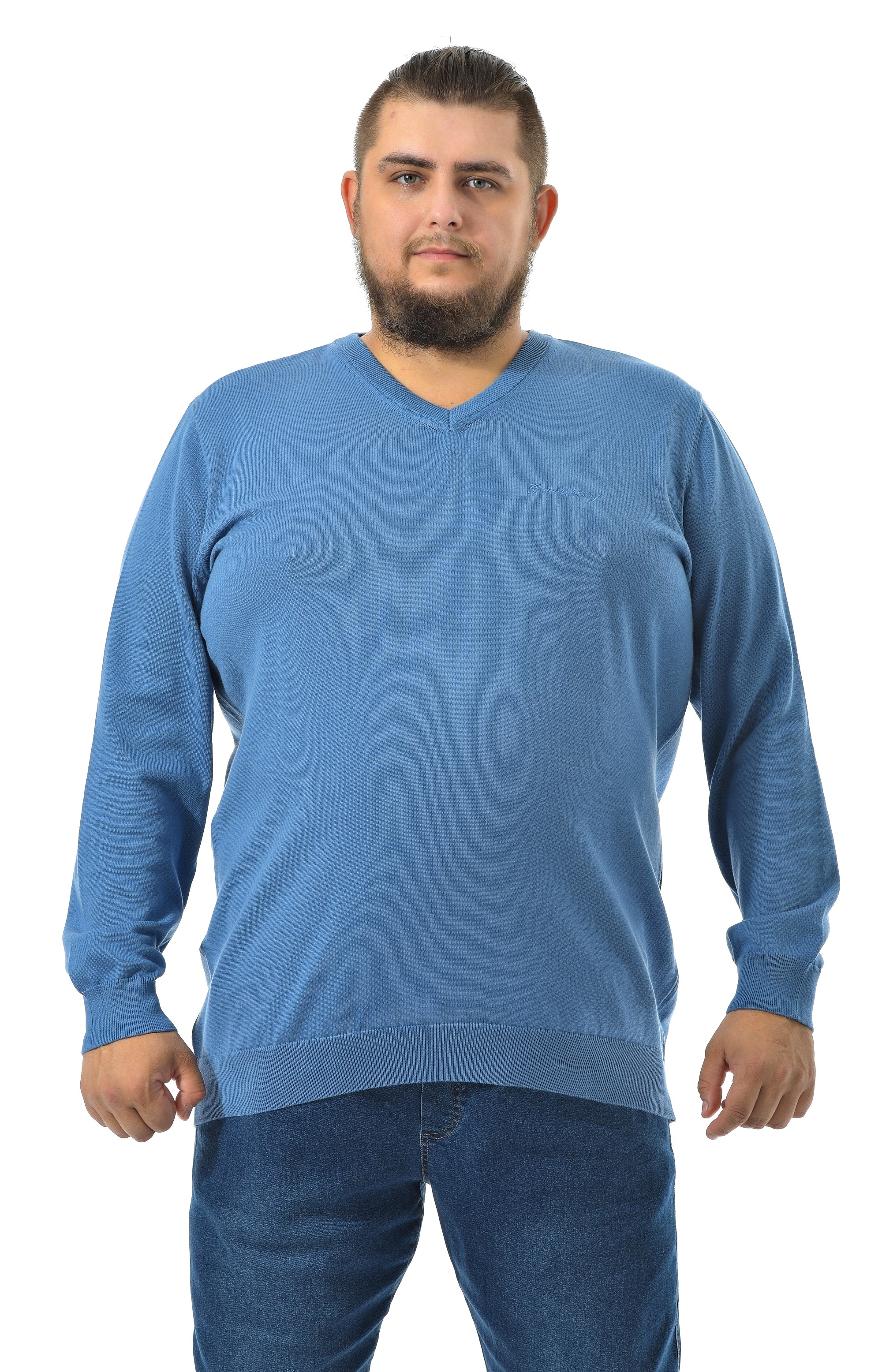Мужской трикотажный джемпер, производство Турция. Цвет изделия голубой. Джемпер изготовлен из трикотажного материала высокого качества. Состав изделия 60% хлопок, 20% п/э, 20% вискоза. Благодаря п/э в составе, модель сохраняет форму и не растягивается. Низ и рукава джемпера на мягкой трикотажной резинке. Изделие с V вырезом. Изделие отлично сочетается как с джинсами, так и с классическими брюками. Джемпер представляет собой сочетание стиля, комфорта и тепла, что делает его отличным выбором для любого мужчины, который ищет удобную одежду для повседневной носки.