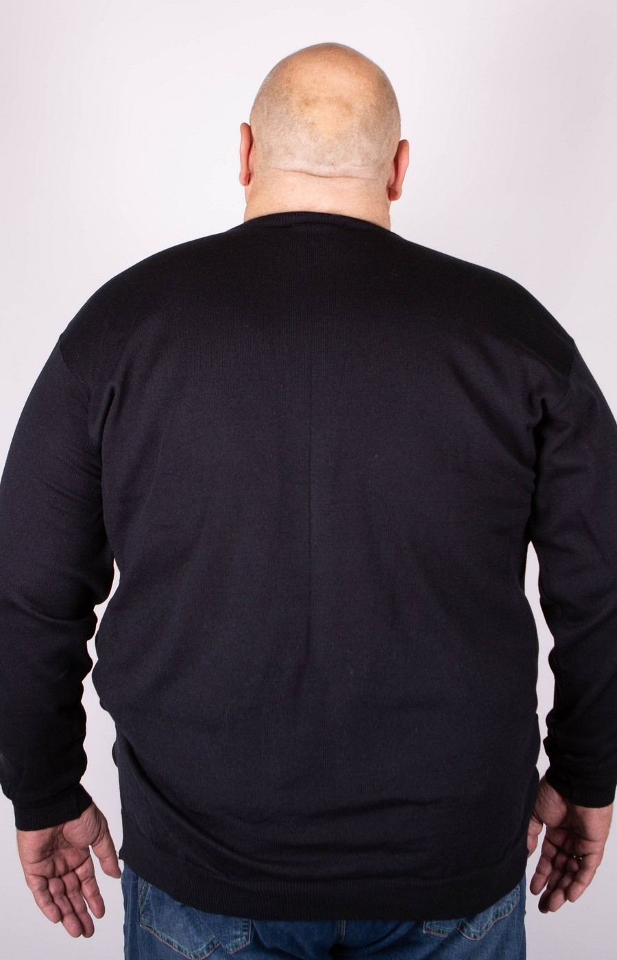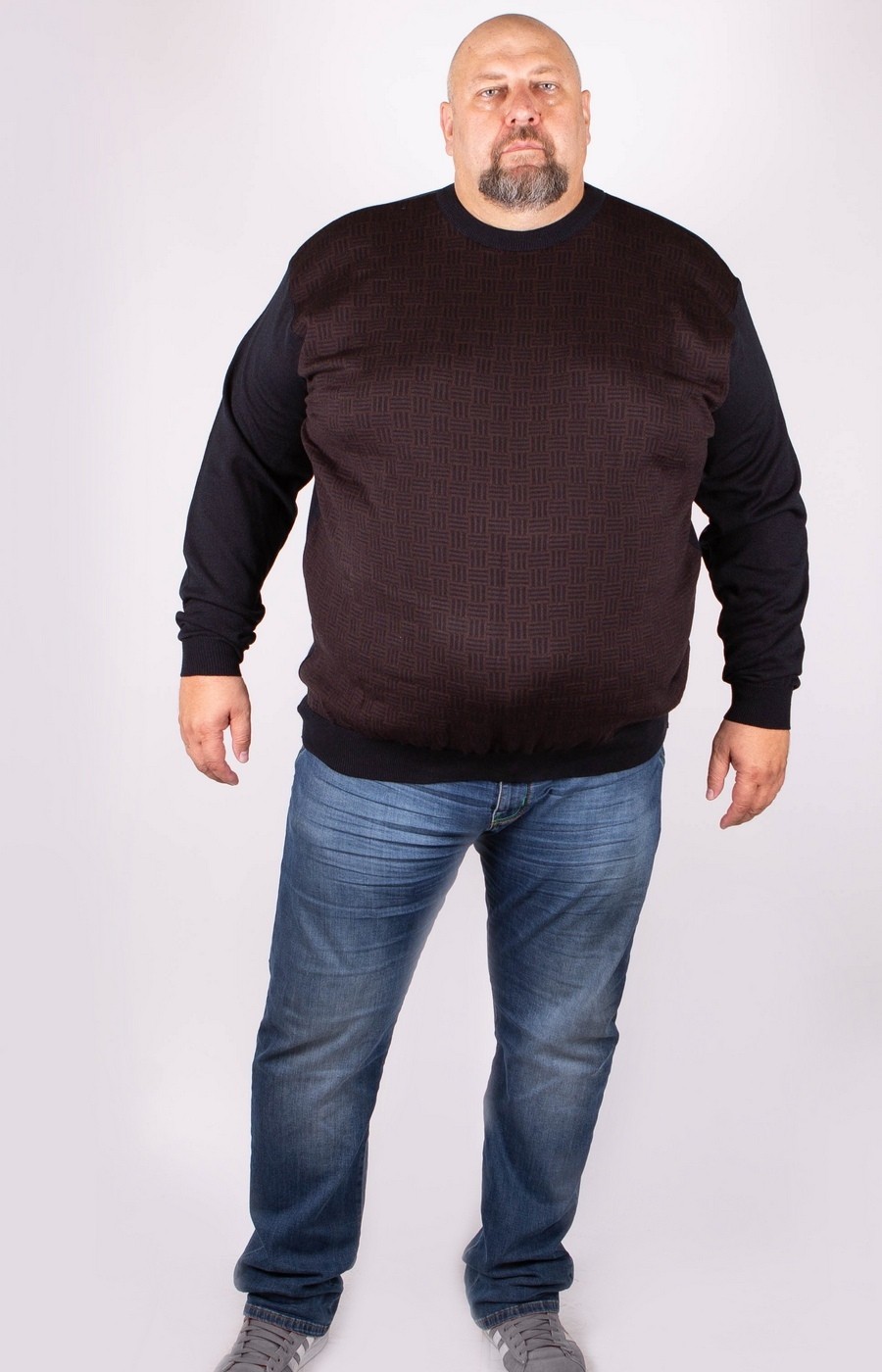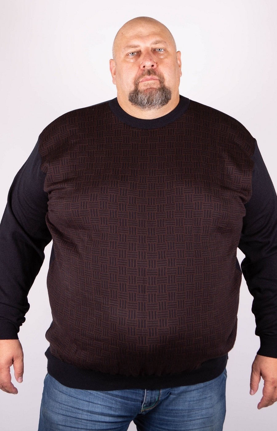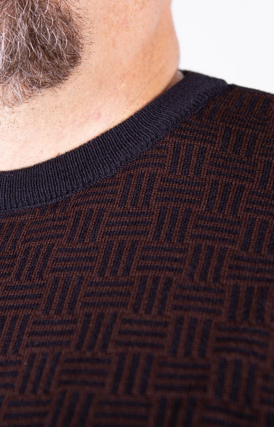 Джемпер с круглым вырезом. Сине-коричневая расцветка и вязка.