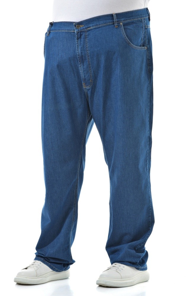 Мужские джинсы синего цвета с посадкой под живот. Классическая модель.