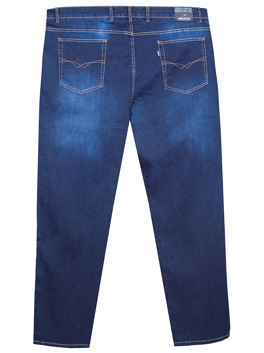 Темно синие джинсы Dekons с небольшой вываркой. Посадка - средняя. Строчка - контрастная в две нитки