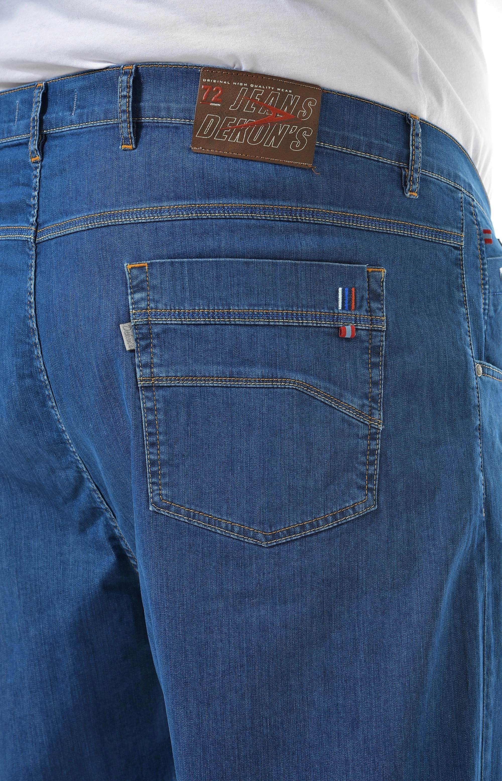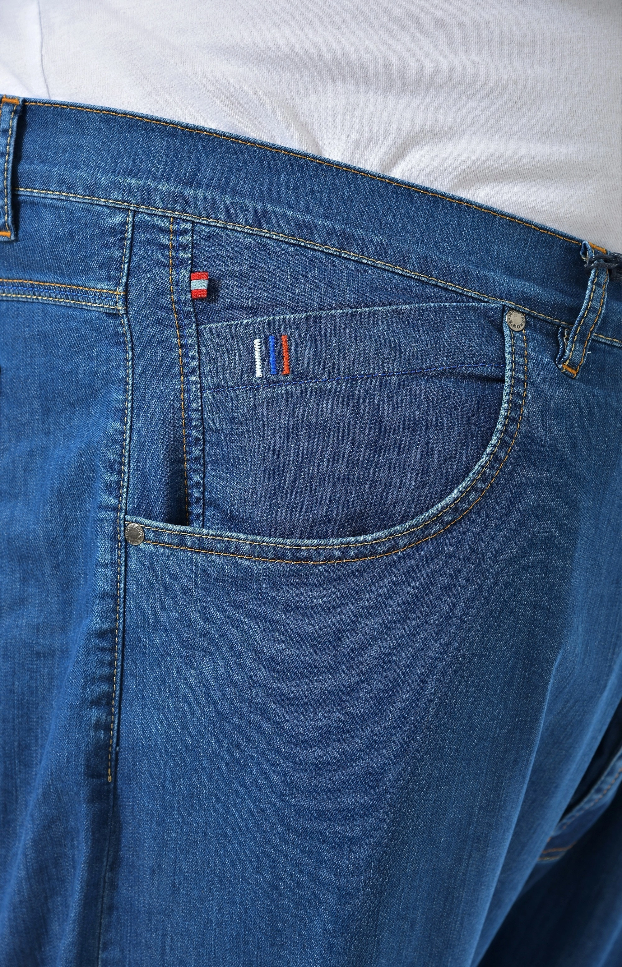 Мужские джинсы больших размеров DEKON’S с надёжной средней посадкой и прямым кроем — универсальная база для повседневных образов. Эластичный деним 97% хлопок / 3% эластан обеспечивает комфорт при движении и сохраняет форму после стирок. Синий цвет легко комбинировать с базовым гардеробом. Производство Турция. Размеры 70–72; ориентир по талии 140–144 см. Выбор для тех, кому нужны практичные, долговечные джинсы для полных мужчин.