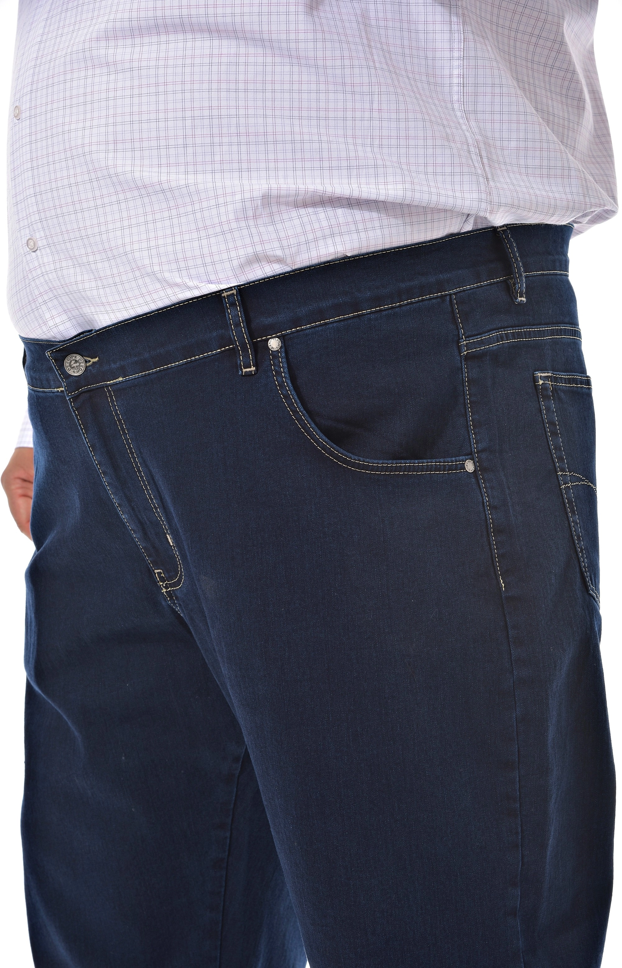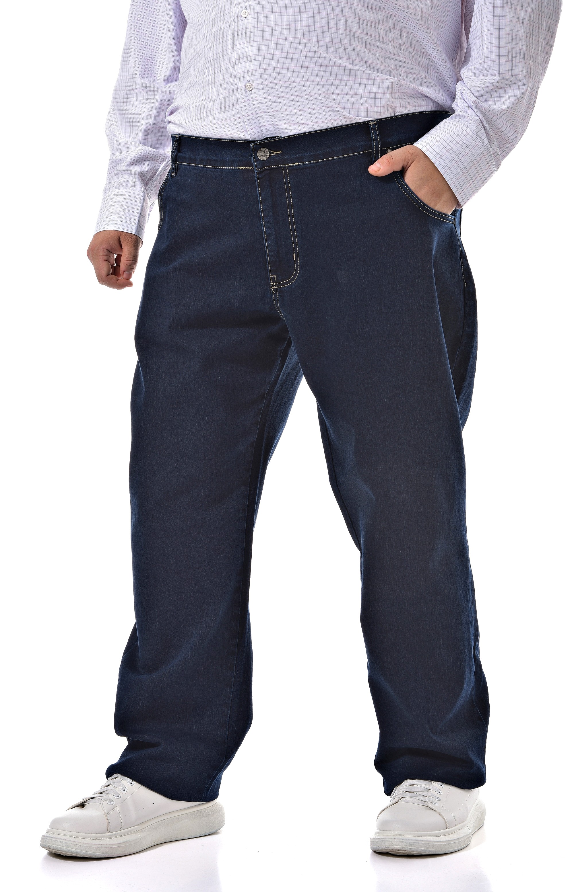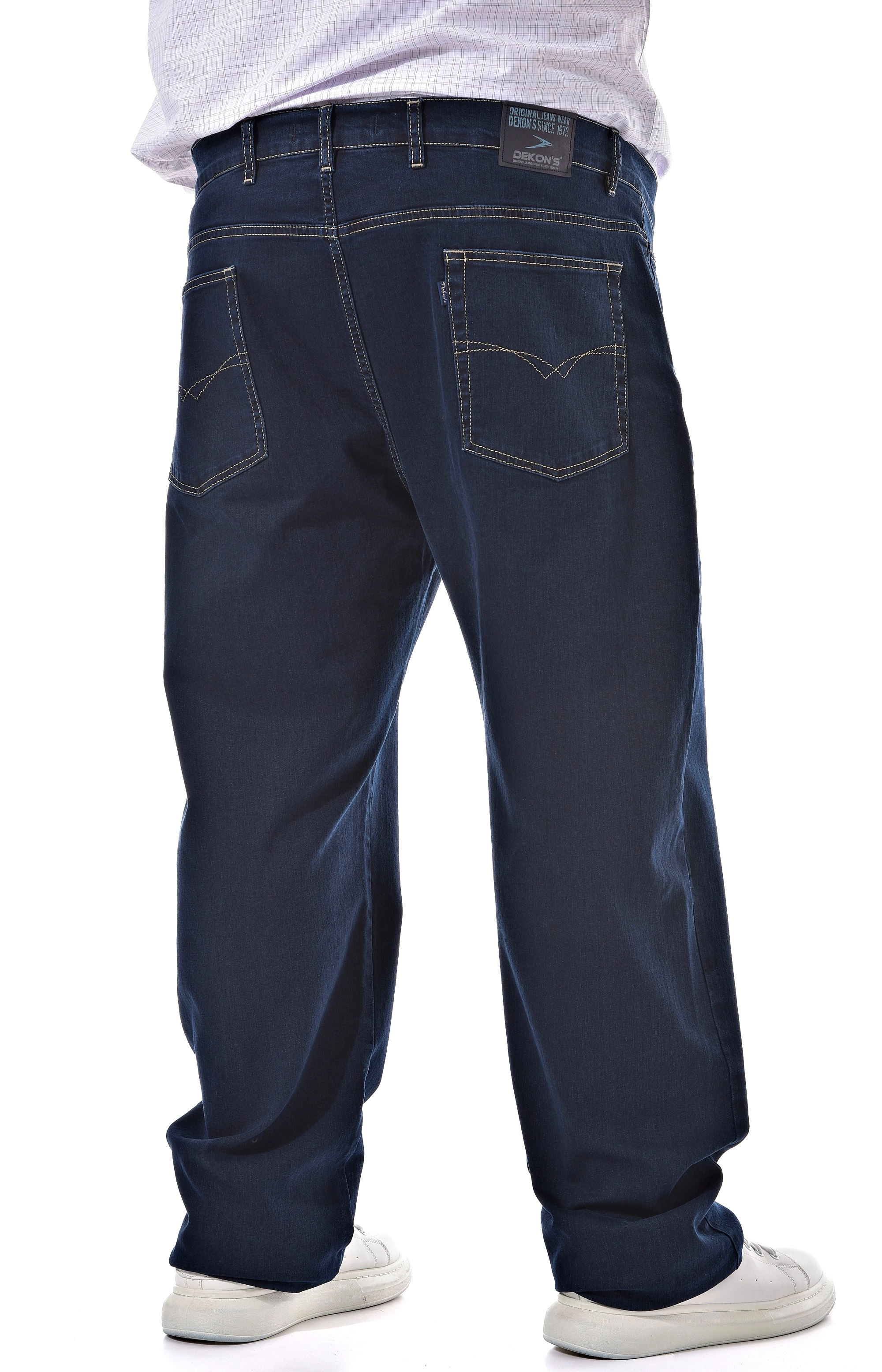 DEKON’S — джинсы больших размеров из эластичного денима 97% хлопок / 3% эластан, синие. Средняя посадка комфортно ложится под живот, прямой крой даёт свободу шага. Ткань тянется и возвращается к форме, подходит для целого дня в дороге или офисе. Пояс со шлёвками, застёжка на молнию. Нейтральный оттенок легко комбинируется с футболками, рубашками и джемперами. Выберите размер и оформите заказ — эластичный деним и уверенная посадка для больших размеров.