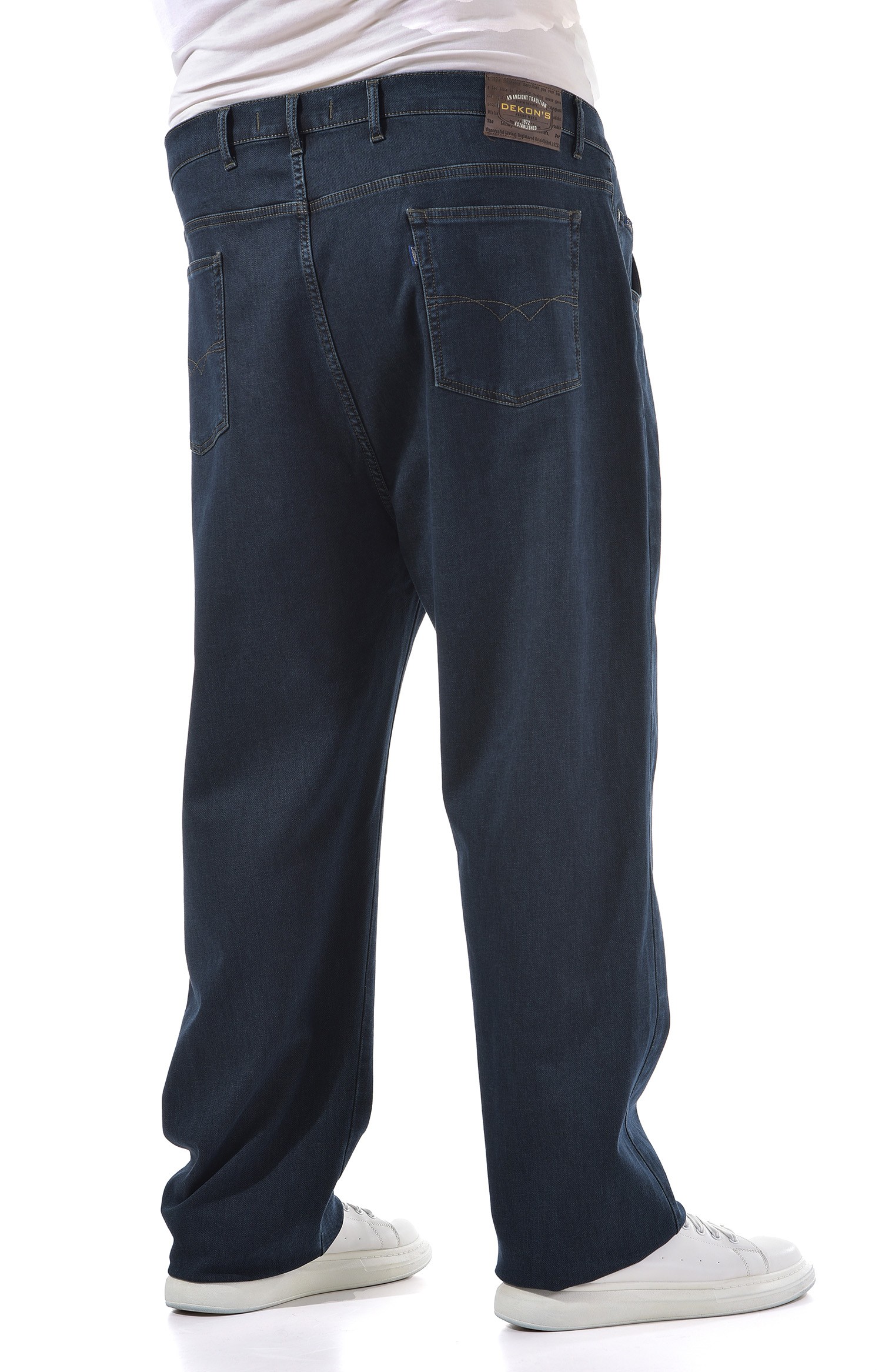 Турецкие джинсы DEKON"S тёмно-синего цвета из качественного хлопкового эластичного денима. Модель высокой посадки, прямого кроя. Изделие имеет 5 карманов. Качество и современность мужских джинсов большого размера DEKON"S проверено временем