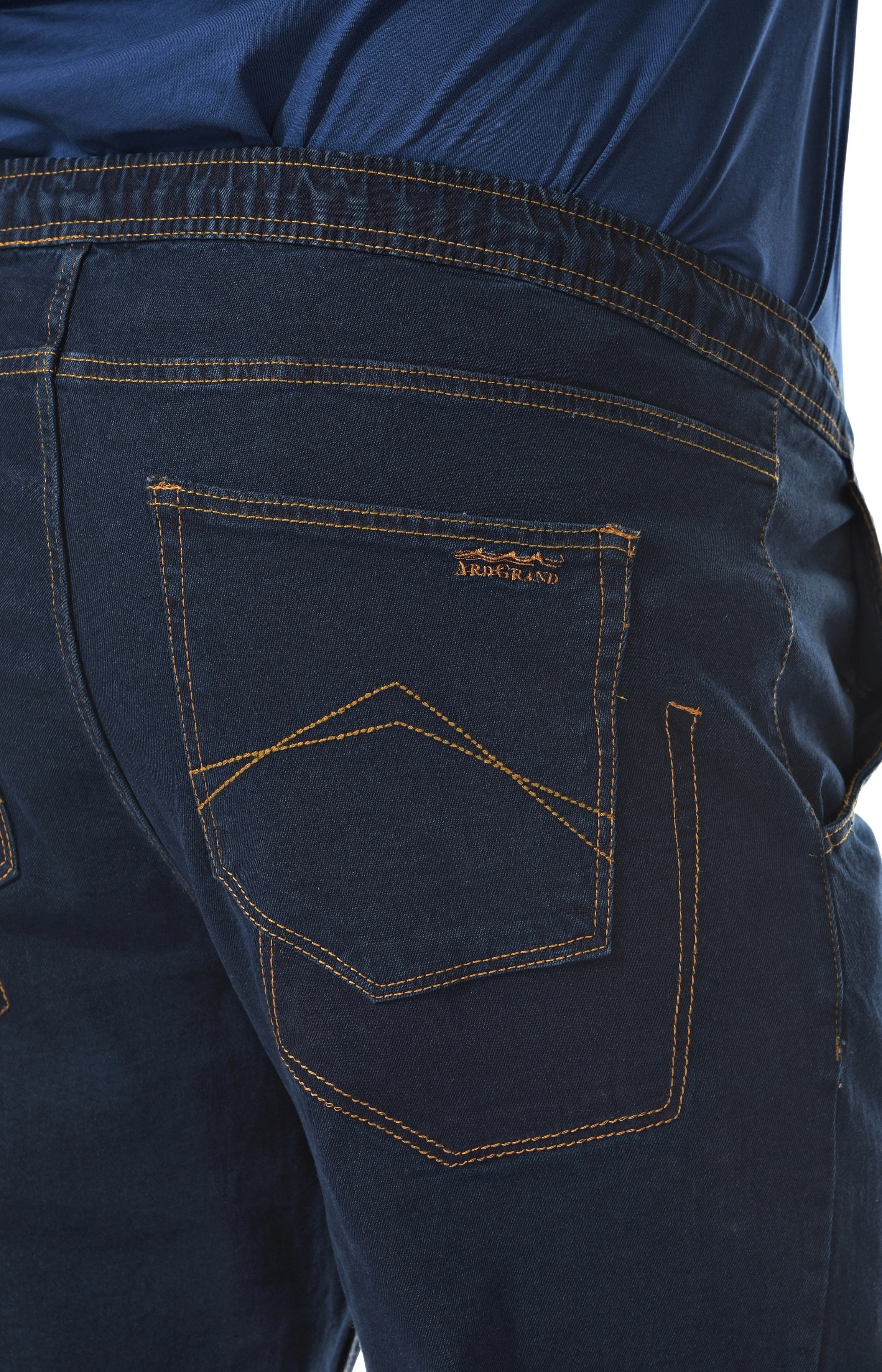 Мужские джинсы прямого кроя тёмно - синего цвета. Посадка средняя. Оригинально оформленные карманы сзади
