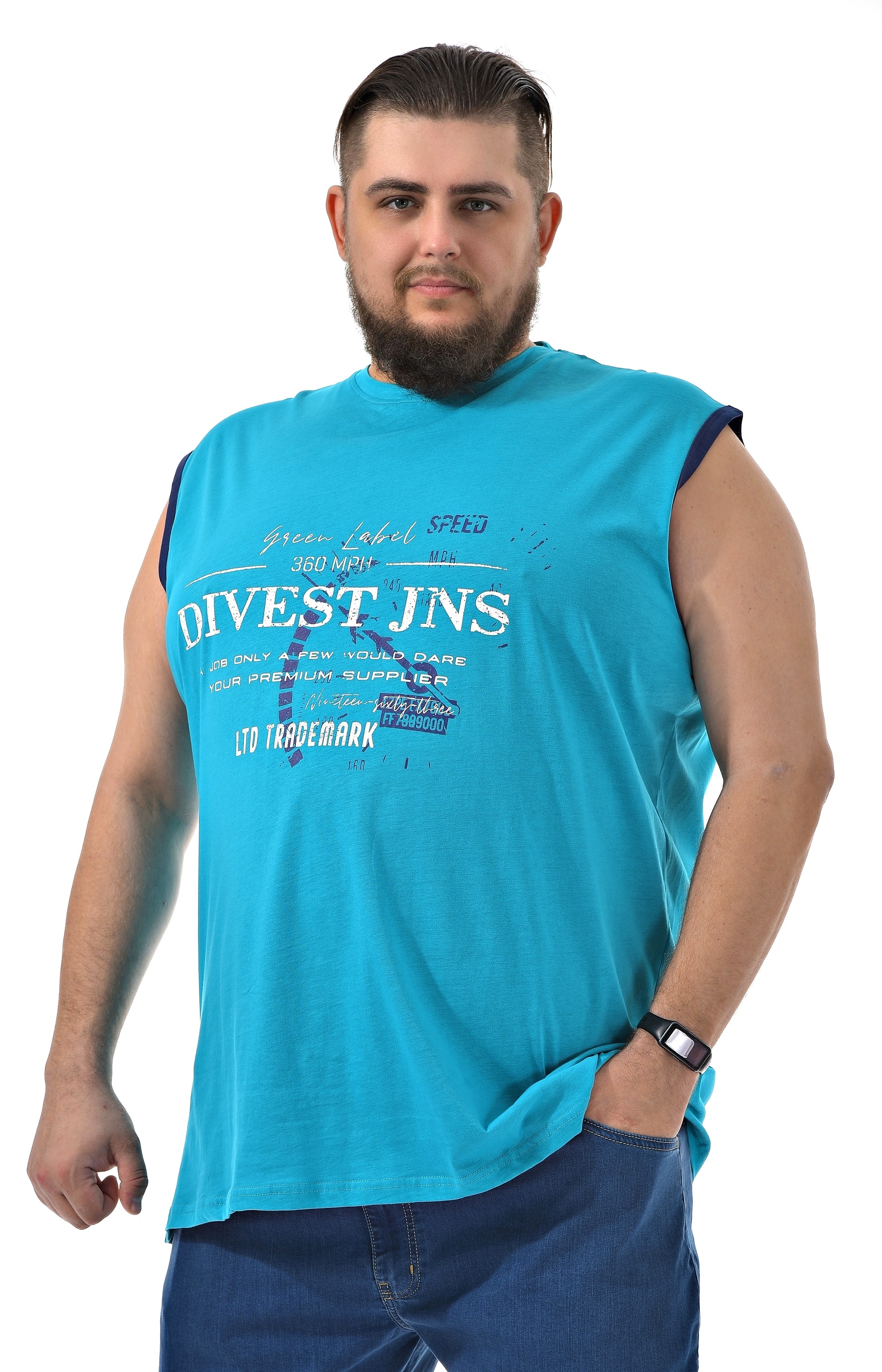 Мужская атлетка производство Турция от бренда DIVEST. Модель с округлым вырезом горловины. Цвет - бирюзовый. Силуэт классический прямой