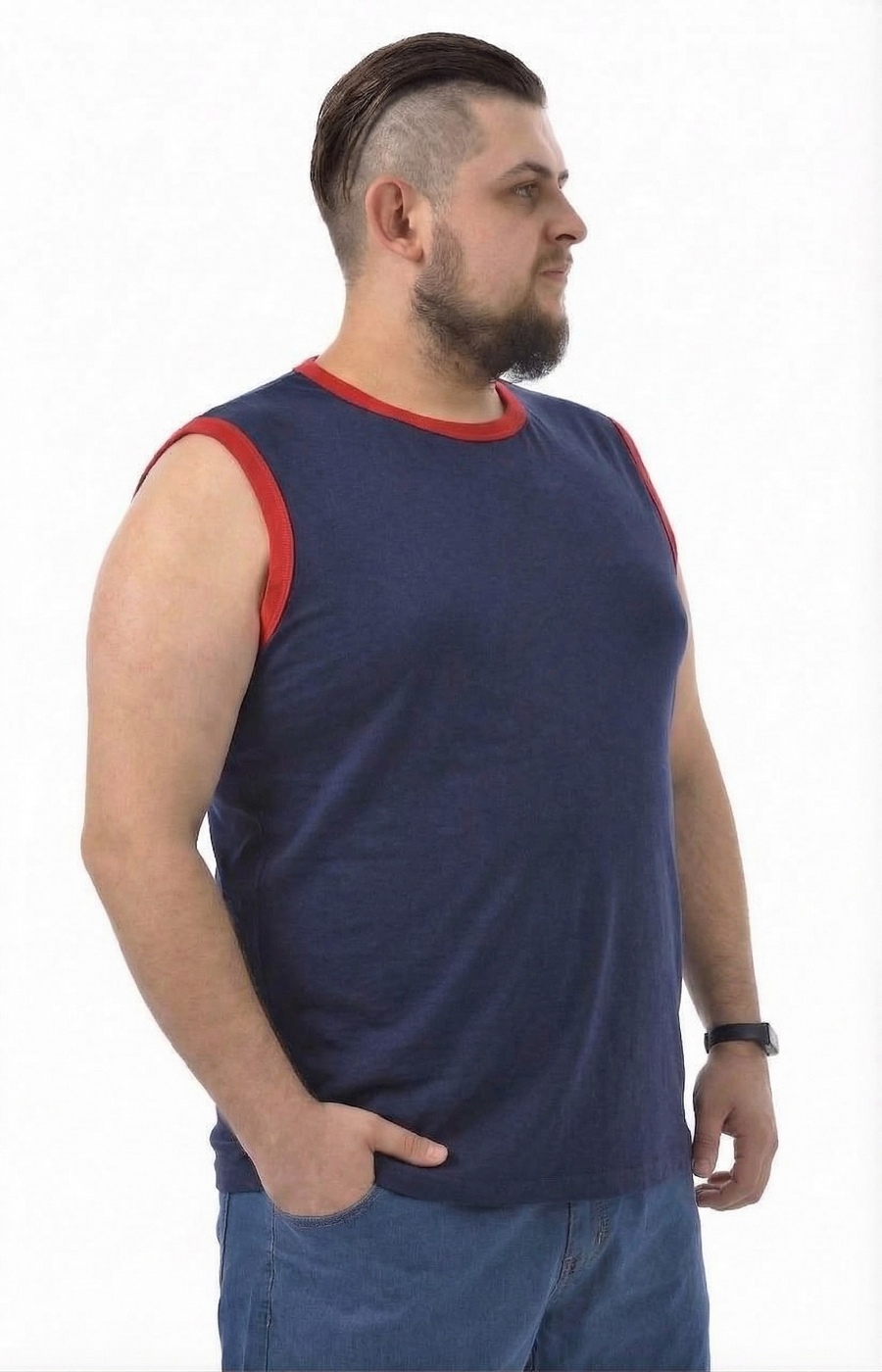 Мужская майка атлетка свободного кроя в темно‑синем цвете с контрастной красной окантовкой горловины и пройм выглядит как практичный вариант для повседневных образов и отдыха. Прямой силуэт с комфортной посадкой не стесняет движений, открытые плечи обеспечивают свободу рук, а аккуратная бейка по краю добавляет собранности внешнему виду. Длина по кадру закрывает линию пояса, что удобно для сочетания с джинсами, шортами или спортивными брюками. Монохромный корпус без лишнего декора и лаконичный дизайн позволяют носить майку дома, на прогулке, на даче или на тренировке. Подскажем подходящий размер и посадку по вашим меркам и организуем доставку удобным для вас способом, чтобы обновка быстро оказалась в вашем гардеробе.