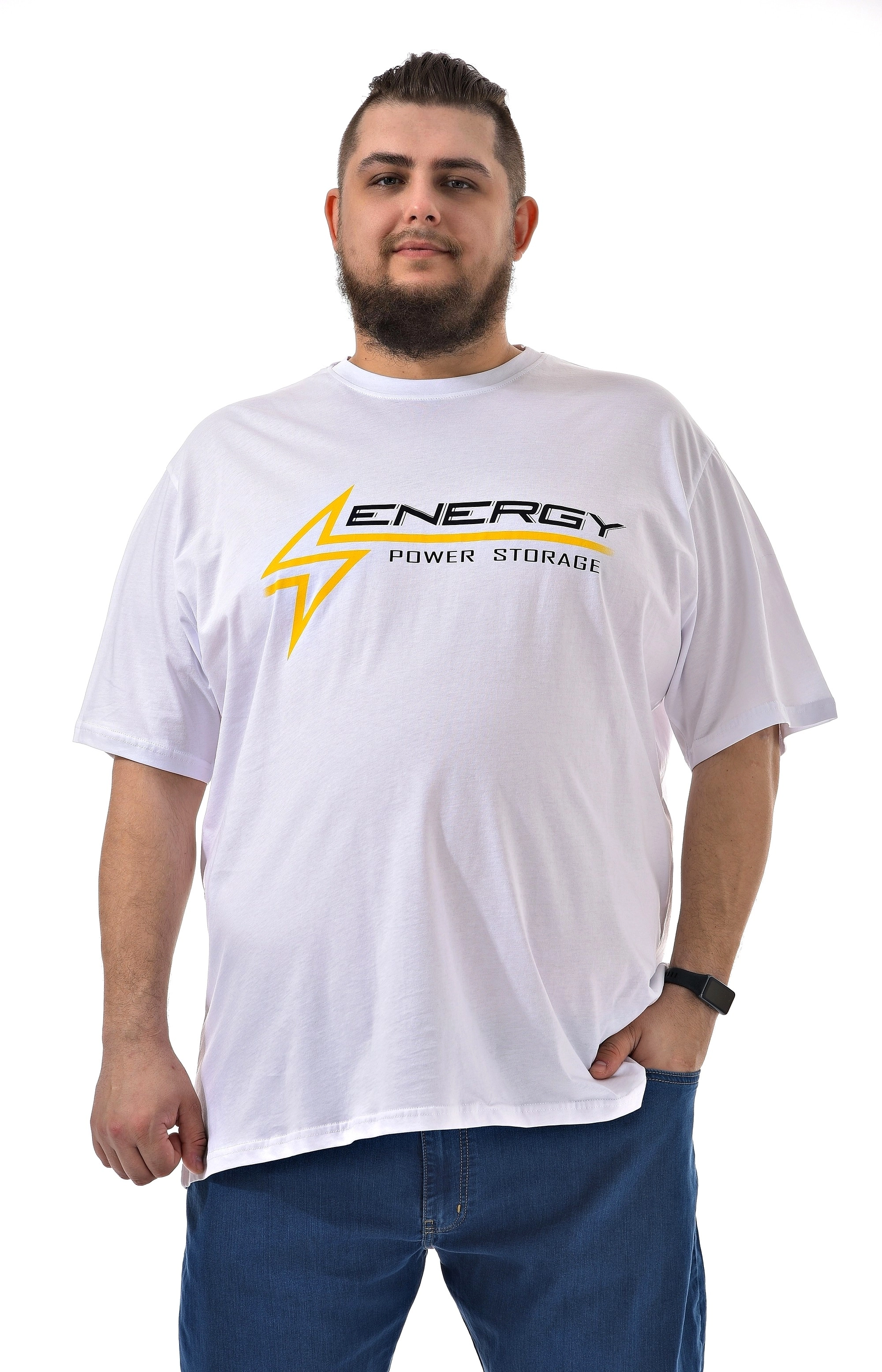 Мужская футболка белого цвета с круглым вырезом. Рисунок на груди