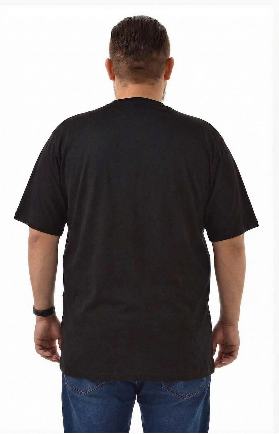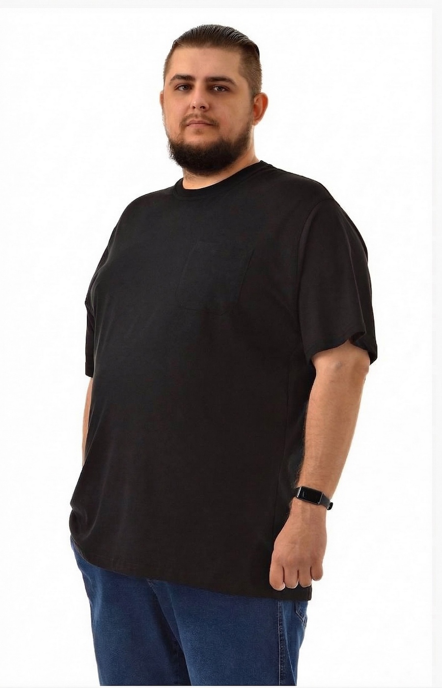 Базовая мужская футболка свободного кроя с круглым вырезом горловины и аккуратным нагрудным карманом создаёт комфортную посадку и спокойный повседневный образ. Однотонный чёрный цвет легко сочетается с джинсами, спортивными брюками и шортами, подходит для города, дома и отдыха. Прямые плечевые швы и расслабленные рукава до локтя не стесняют движений и смотрятся аккуратно. Плотная, гладкая по виду ткань держит форму, а стандартная длина по бедру позволяет заправлять футболку или носить навыпуск. Перед заказом поможем с выбором подходящего размера и посадки по вашим меркам, а готовый заказ аккуратно доставим удобным для вас способом.