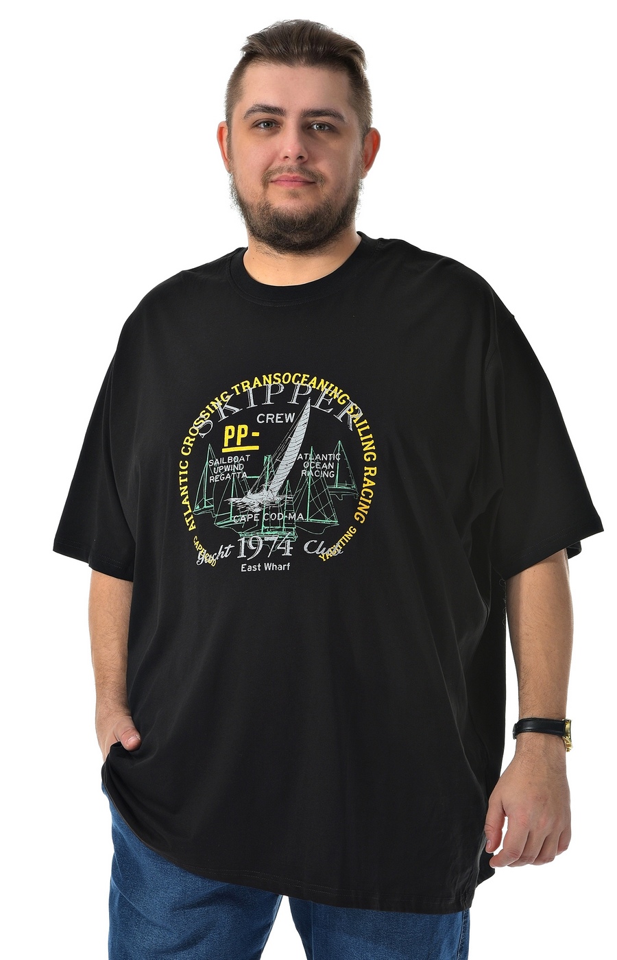 Черная футболка свободного кроя обеспечивает комфортную посадку и не стесняет движений, создавая практичный повседневный образ. Плотная по виду ткань с гладкой фактурой ровно ложится по плечам и груди, рукава удлиненные и слегка прикрывают локоть, длина по кадру закрывает линию бедра. Круглый вырез горловины выполнен с аккуратной обтачкой в тон, что поддерживает лаконичный внешний вид. Контрастный принт с парусником и надписями на груди добавляет выразительный спортивно-уличный характер и делает футболку уместной для города, отдыха и неформальной рабочей среды в сочетании с джинсами или шортами. Поможем с подбором размера и посадки по вашим меркам, организуем доставку тем способом, который вам будет удобен.