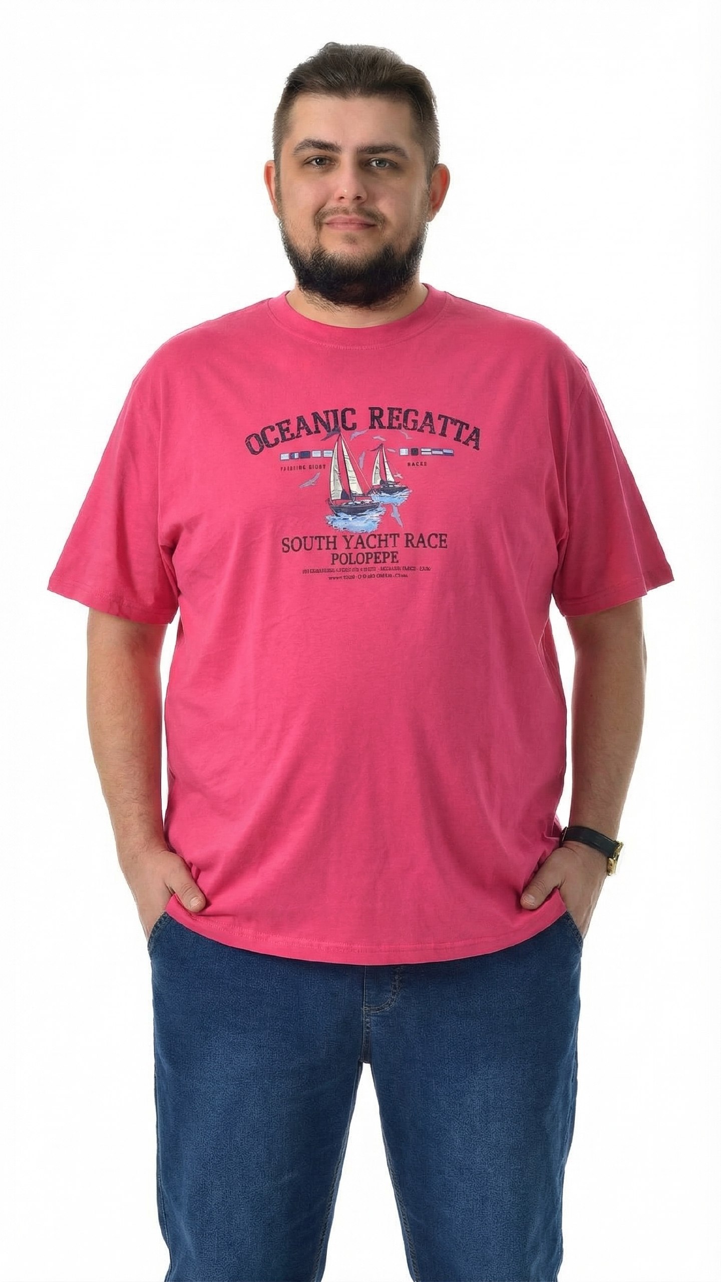 Мужская футболка свободного кроя с комфортной посадкой и округлой горловиной выполнена в сочном розово-малиновом цвете, ключевые фразы: футболка большого размера, мужская футболка плюс сайз, повседневная футболка. Передняя часть украшена крупным тематическим принтом с яхтенной регатой и контрастными надписями, которые задают спортивное и немного морское настроение образу. Рукава средней длины и прямой силуэт не стесняют движений и помогают сохранить аккуратный внешний вид в течение дня. По кадру длина футболки закрывает линию бедра, создавая практичный вариант на каждый день для города, прогулок и отдыха. В сочетании с джинсами или шортами образ остается собранным и удобным для повседневных дел. Если сомневаетесь в выборе, подскажем размер и посадку по вашим меркам и организуем доставку удобным для вас способом.