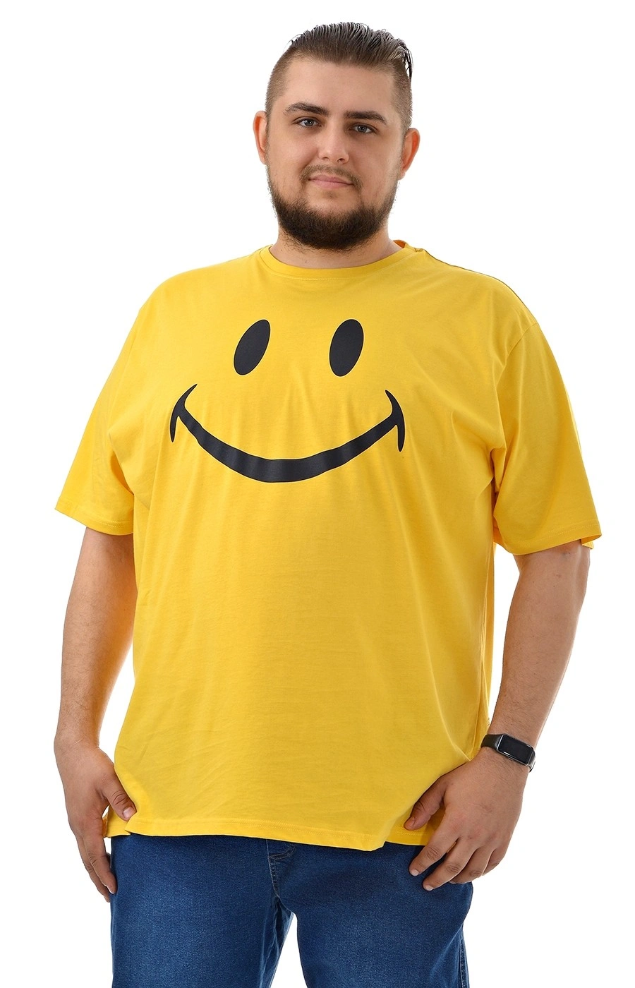 Мужская футболка желтого цвета с рисунком "Улыбка"