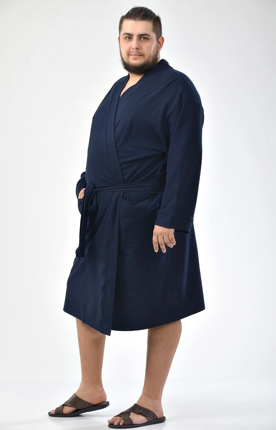 Легкий мужской халат на запах с накладными карманами. Ткань "лакоста" синего цвета. Идеальный подарок мужчине.