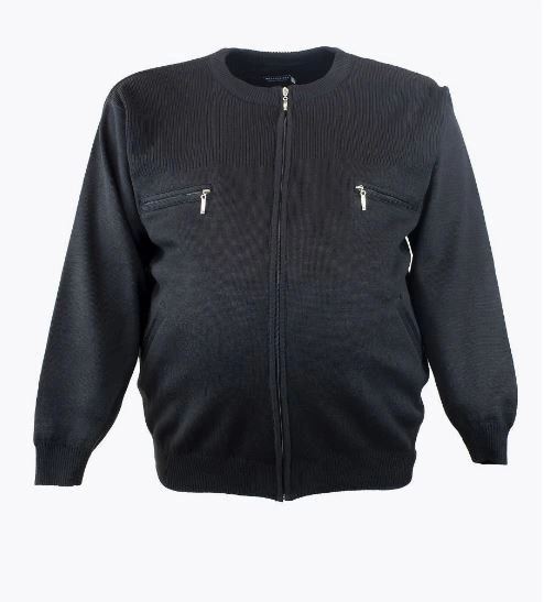 Жакет вязанный черного цвета на молнии Два прорезных кармана. Низ изделия на трикотажной резинке Вырез горловины круглый. Полноразмерная модель