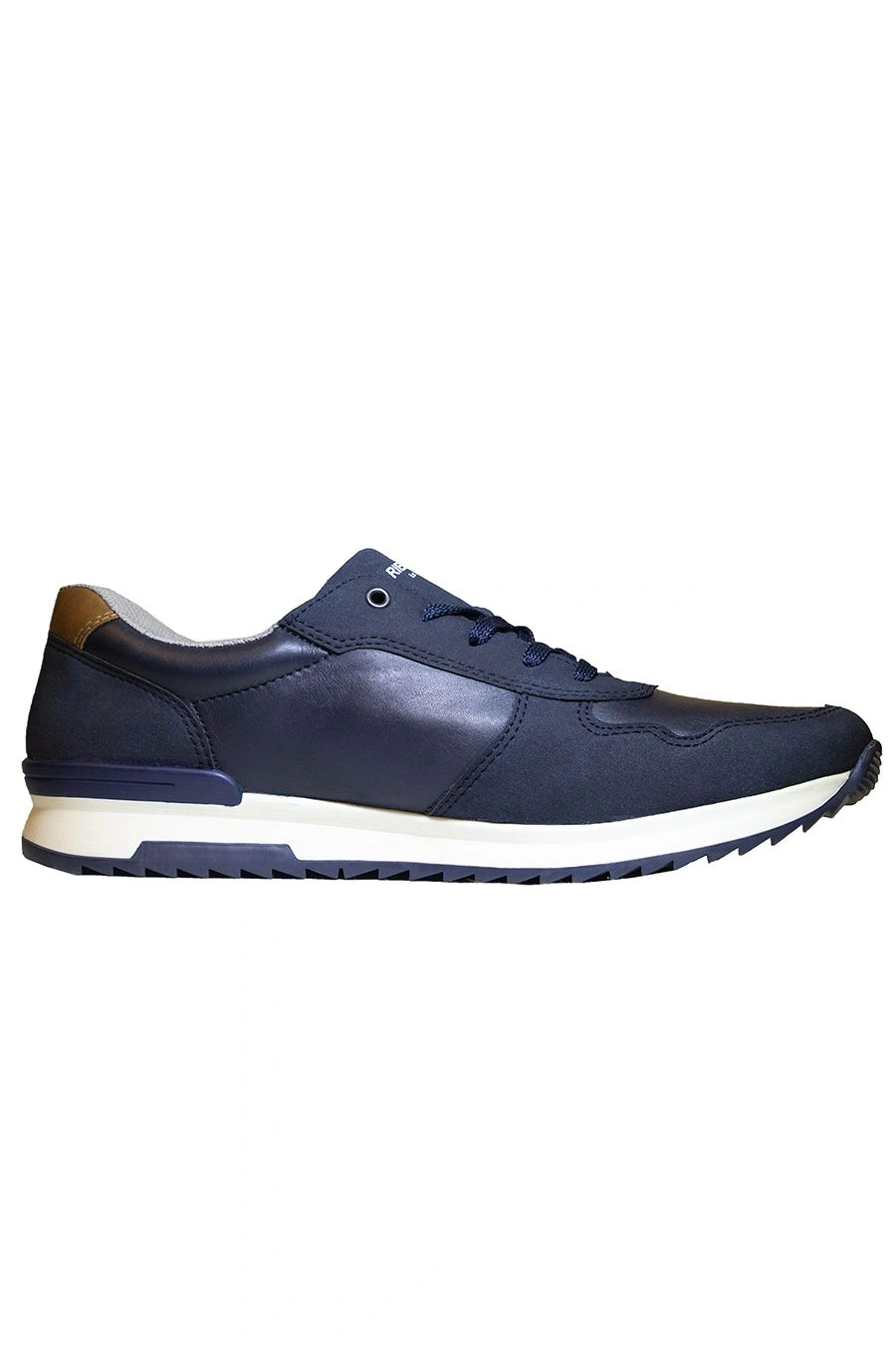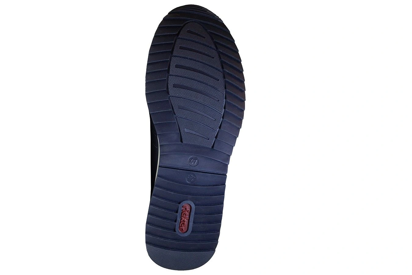 Универсальная спортивная конструкция: натуральная кожа с экокожей верха, текстильная стелька, резиновая подошва, шнуровка позволяет отрегулировать полноту на любую ногу. Размер 47 для больших размеров обуви. Мужские кожаные кроссовки отлично сочетаются с различными предметами гардероба и способны создать стильный динамичный образ. Спортивная обувь подходит для прогулок, офиса и повседневной носки. Немецкое производство Rieker — качественные универсальные синие кроссовки для мужчин с большим размером ноги.