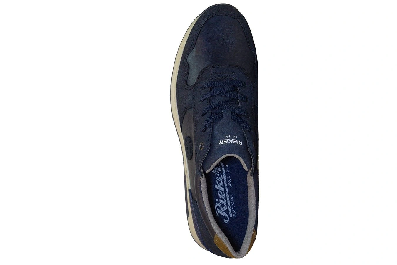 Мужские кожаные кроссовки больших размеров Rieker в синем цвете — удобная функциональная универсальная обувь на каждый день от популярного бренда. Классические кроссовки изготовлены из комбинации натуральной кожи и экокожи. Натуральная кожа надолго сохраняет первоначальный внешний вид, не требуя особого ухода. Внутренняя стелька выполнена из текстиля для комфорта. Высокая подошва не скользит и амортизирует при ходьбе, делая комфортным каждый шаг даже при длительной носке — она изготовлена из гибкого современного полимера. Синий цвет — стильный универсальный оттенок.