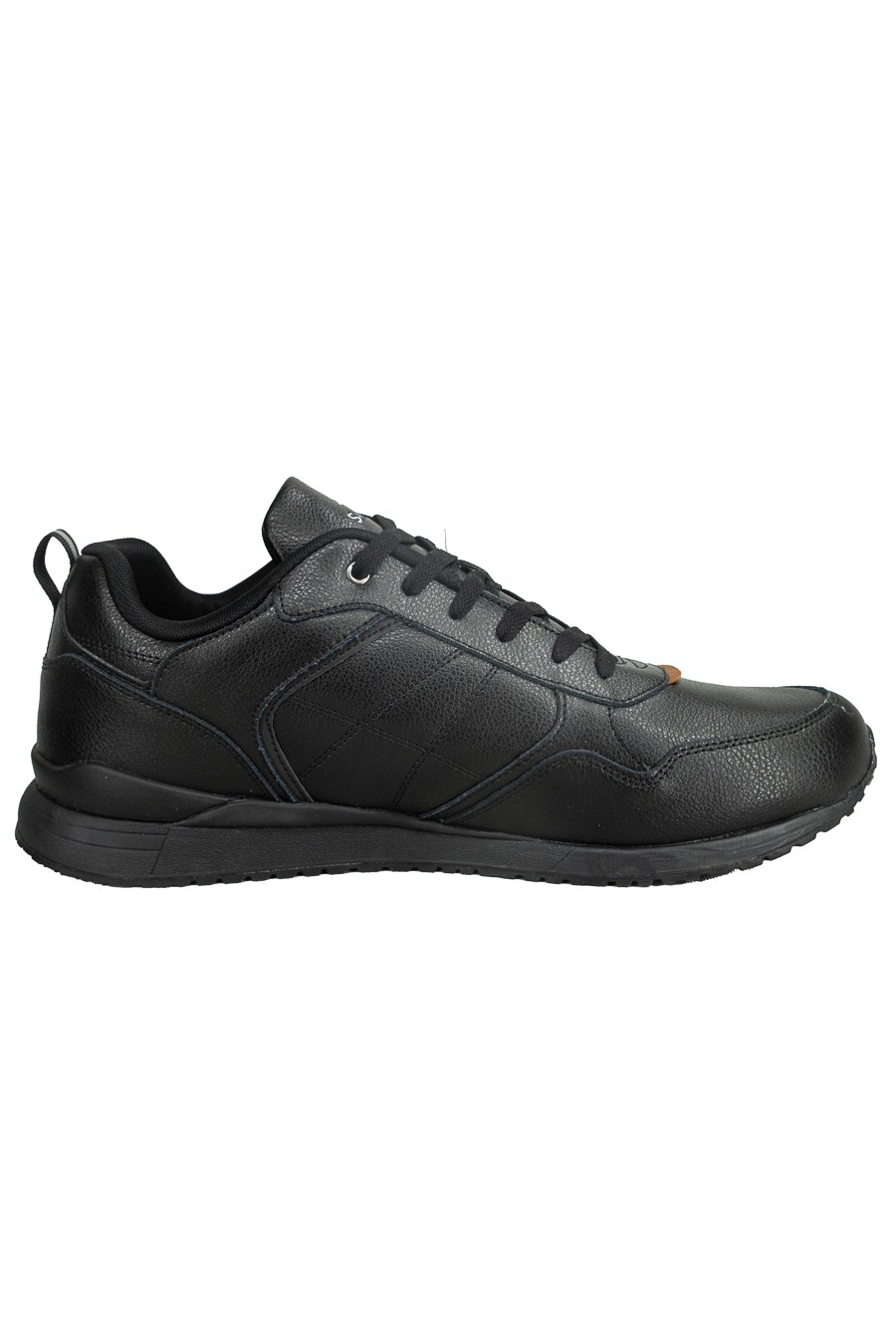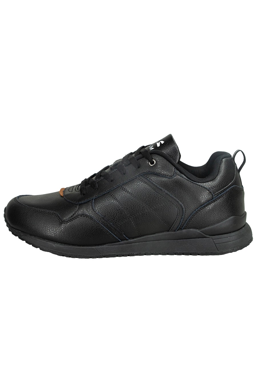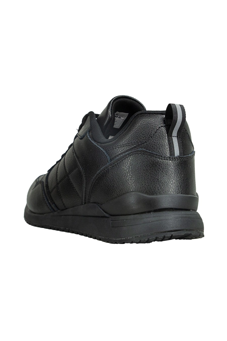 Качественные демисезонные мужские кроссовки чёрного цвета. Верх модели выполнен из натуральной кожи. Подклад текстиль. Кроссовки оснащены шнуровкой. Оригинальная подошва изготовлена из термостойкой прочной резины, имеет рифлёный рисунок. Модель соответствует своему размеру. Мужские кожаные повседневные кроссовки предназначены для активного отдыха, прогулок, занятий спортом. Модель проста в уходе, не деформируется и не теряет свой первоначальный вид.