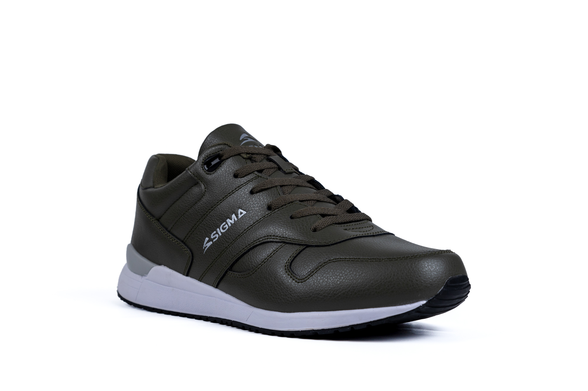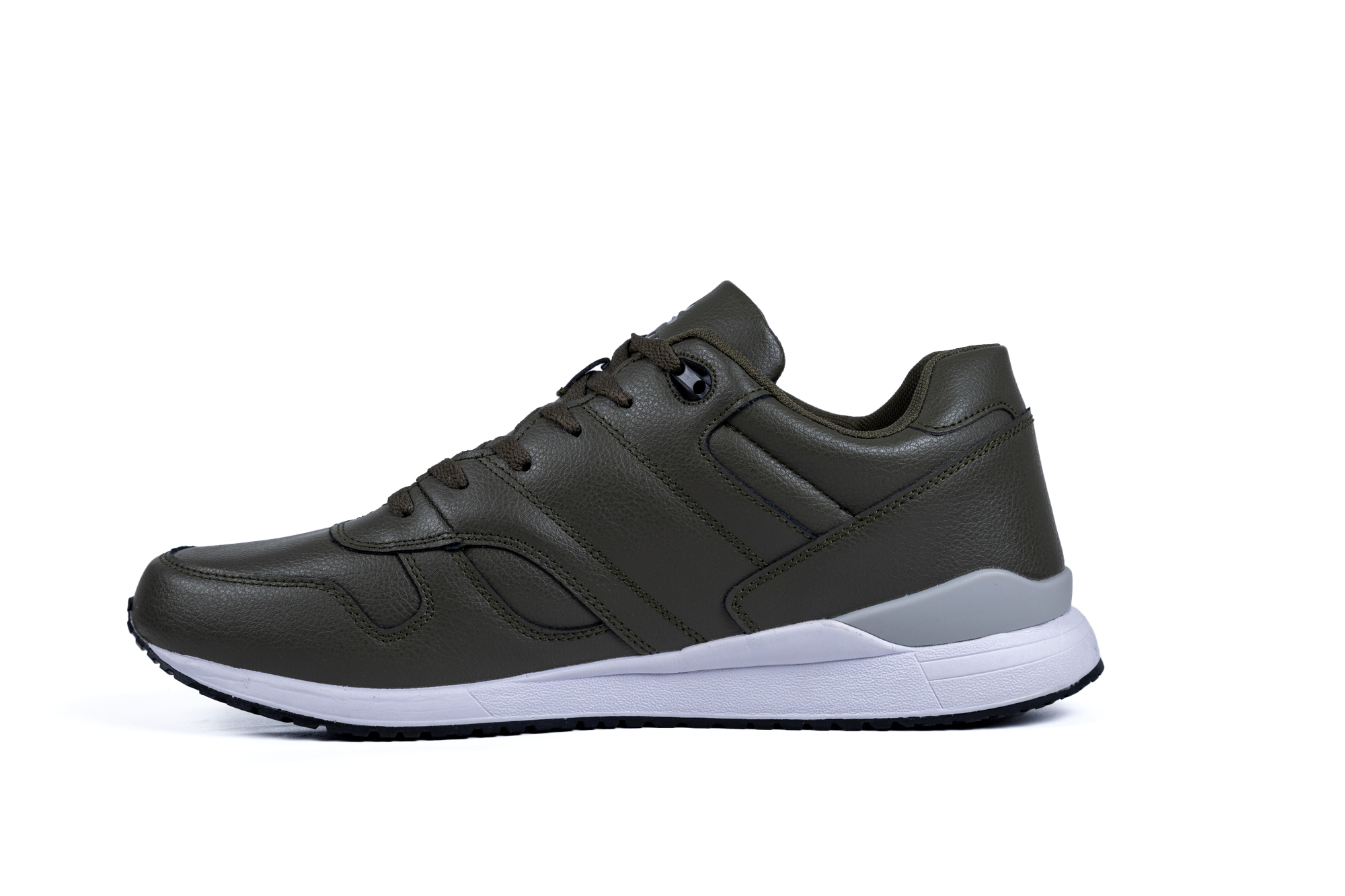 Мужские кроссовки цвета хаки в лаконичном спортивном стиле с комфортной посадкой по стопе и классической шнуровкой для надежной фиксации. Верх выполнен из матового материала с легкой фактурой, сверху видны плавные строчки и панельные вставки, которые поддерживают форму и создают аккуратный собранный вид. Однотонный темно-зеленый цвет сочетается с контрастной белой подошвой средней высоты, визуально облегчая модель и делая ее практичным вариантом для города и отдыха. Рельефная подошва с протектором рассчитана на уверенное движение по асфальту и другим ровным поверхностям, аккуратный логотип сбоку подчеркивает спортивный характер пары. Если нужен совет по размеру и посадке, подскажем по вашим параметрам и оформим доставку удобным для вас способом.