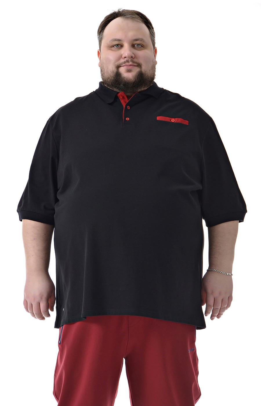 Мужская черная тенниска больших размеров "Большие люди" — новинка, классическая футболка-поло с карманом из натурального 100% хлопка. Всеми любимая классика мужской одежды из ткани лакоста обеспечивает воздухопроницаемость, износостойкость и презентабельный вид. Натуральный хлопок приятен к телу и прост в уходе. Черный цвет — универсальный базовый оттенок для любого гардероба.