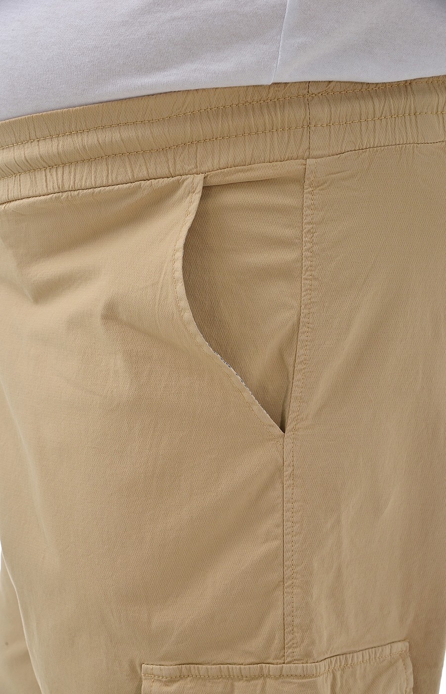 Бежевые габардиновые бриджи прямого свободного кроя обеспечивают комфортную посадку и аккуратный внешний вид для повседневных образов. Эластичный пояс с длинной контрастной шнуровкой надежно фиксирует изделие на талии и позволяет подстроить объем без лишних деталей. Длина ниже колена по кадру дает свободу движения и уместно смотрится и в городе, и на отдыхе. Плотная на вид, гладкая фактура держит форму и подчеркивает лаконичный, практичный стиль. По бокам расположены накладные карманы с клапанами, которые добавляют изделию функциональный, слегка спортивный характер. Поможем с выбором размера и посадки по вашим параметрам и аккуратно доставим бриджи удобным для вас способом.