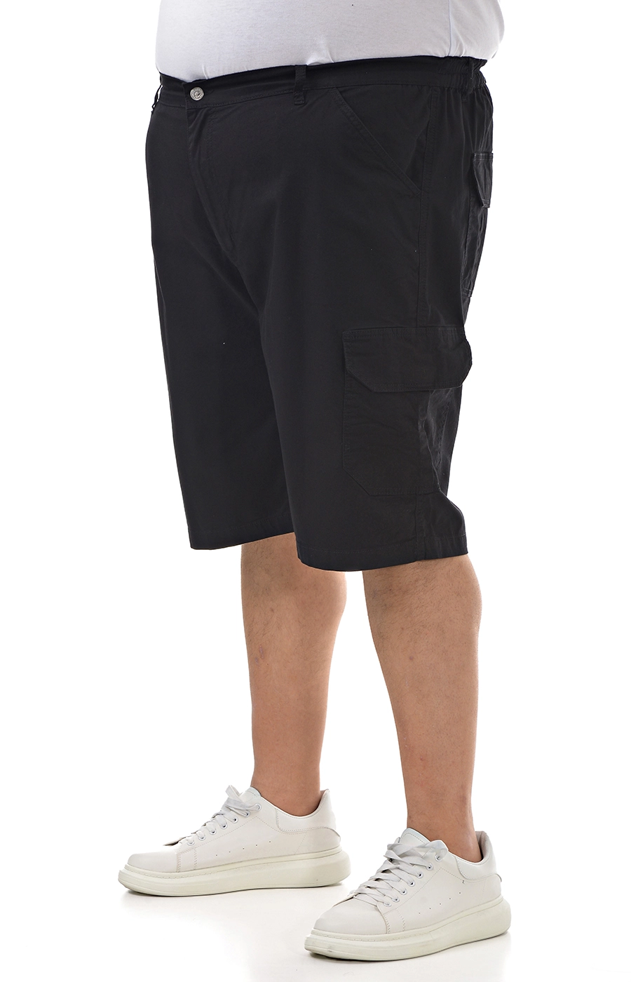Стильные мужские бриджи из хлопкового габардина черного цвета. Застежка на молнию и пуговицу. Накладные карманы на бедрах и сзади. Пояс на резинке по спинке