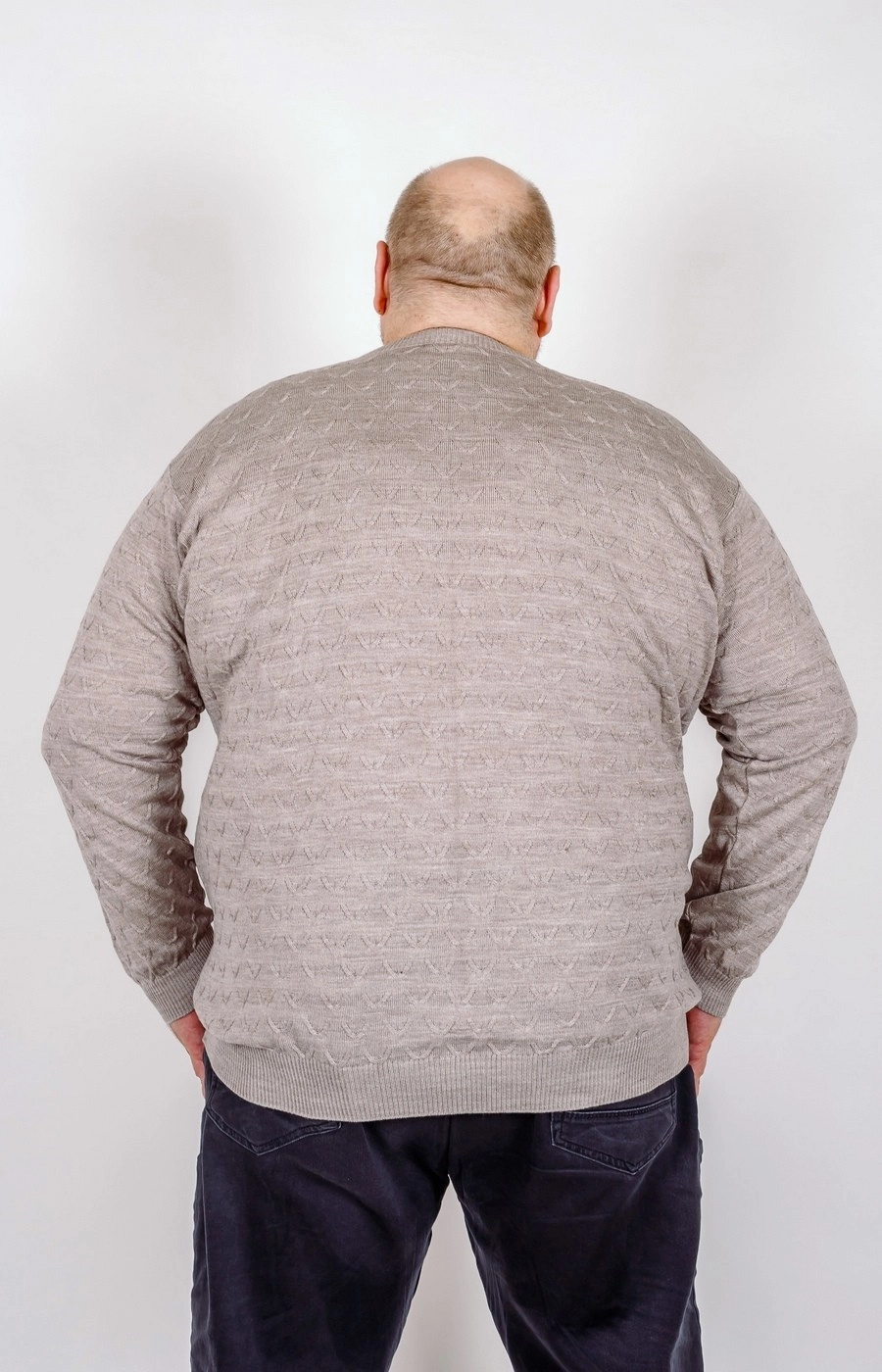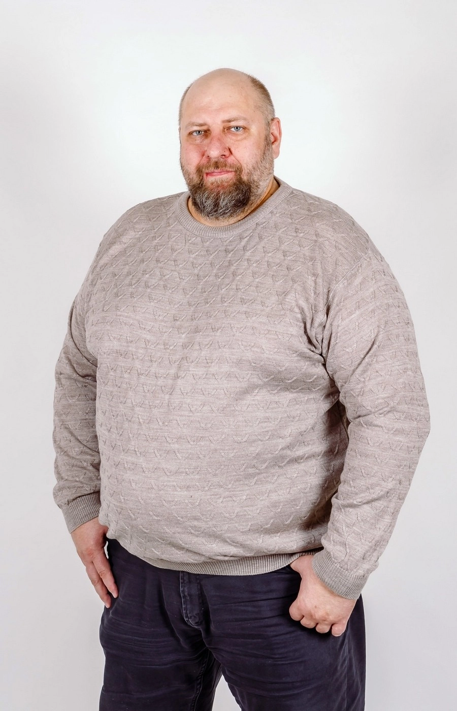 Оригинальный мужской джемпер бежевого цвета с красивым узором. Вырез круглый.