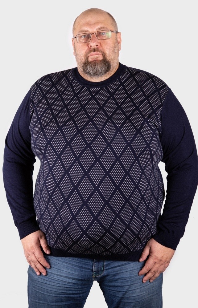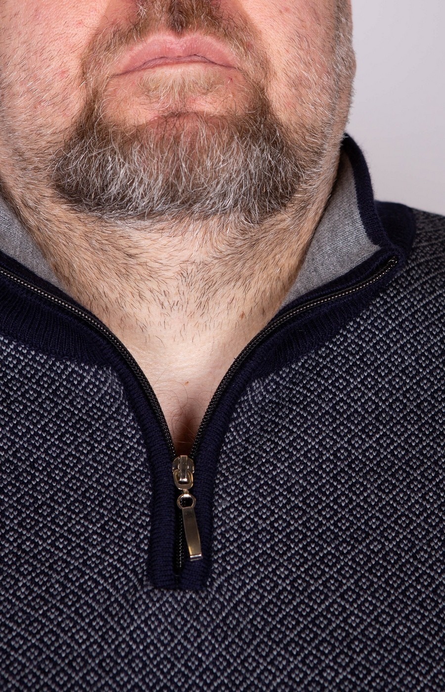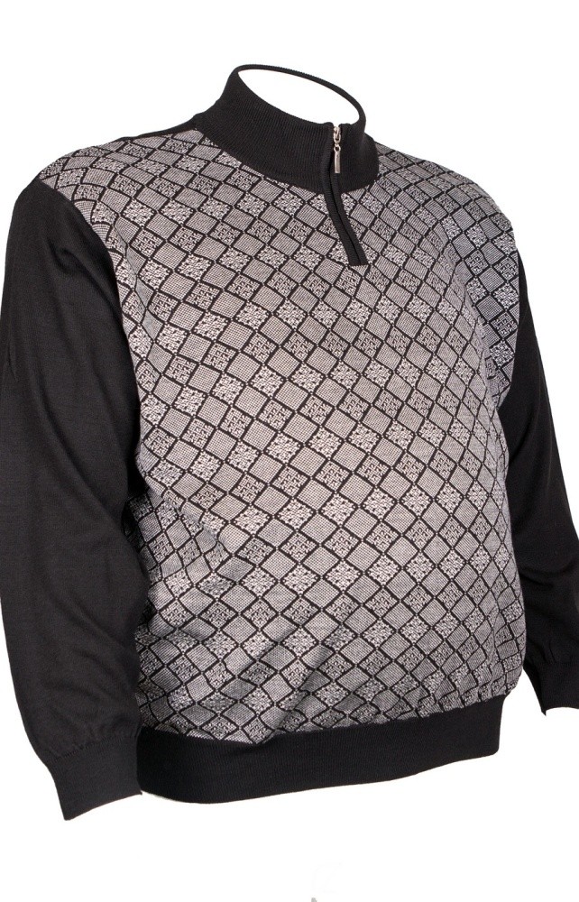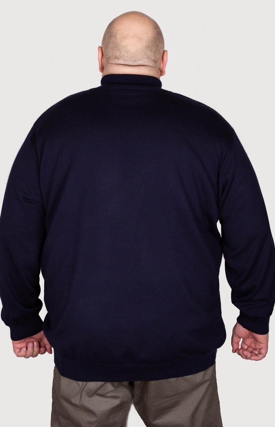 Оригинальный мужской джемпер синего цвета с высоким воротом. Ворот стойка с застежкой на молнию