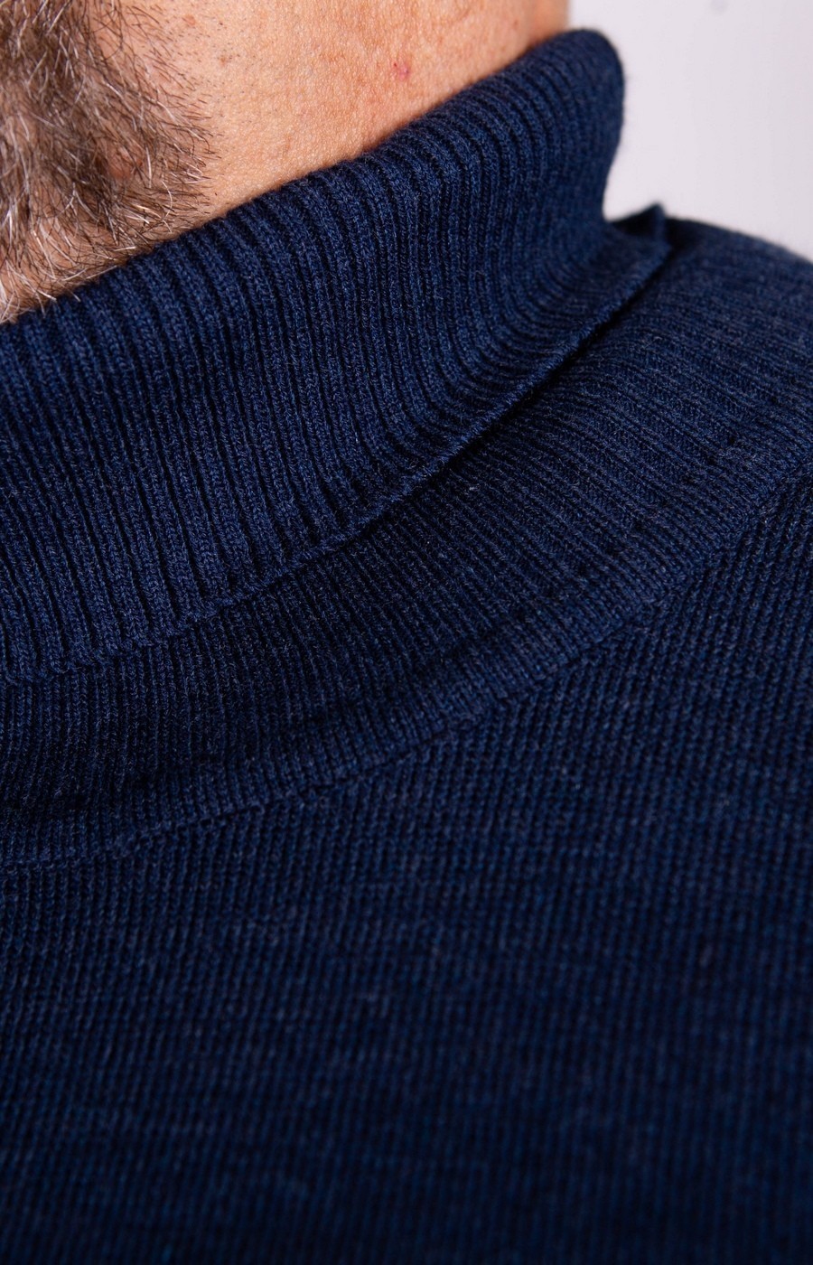Классическая мужская водолазка темно синего цвета. Модель выполнена из эластичного трикотажа Рукав изделия втачной. Водолазка мужская - базовая одежда в современном мужском гардеробе.
