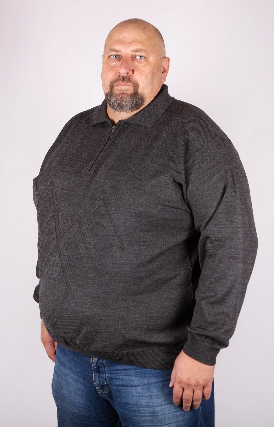 Мужской свитер - поло темно серого цвета с красивой вязкой. Ворот на молнии.