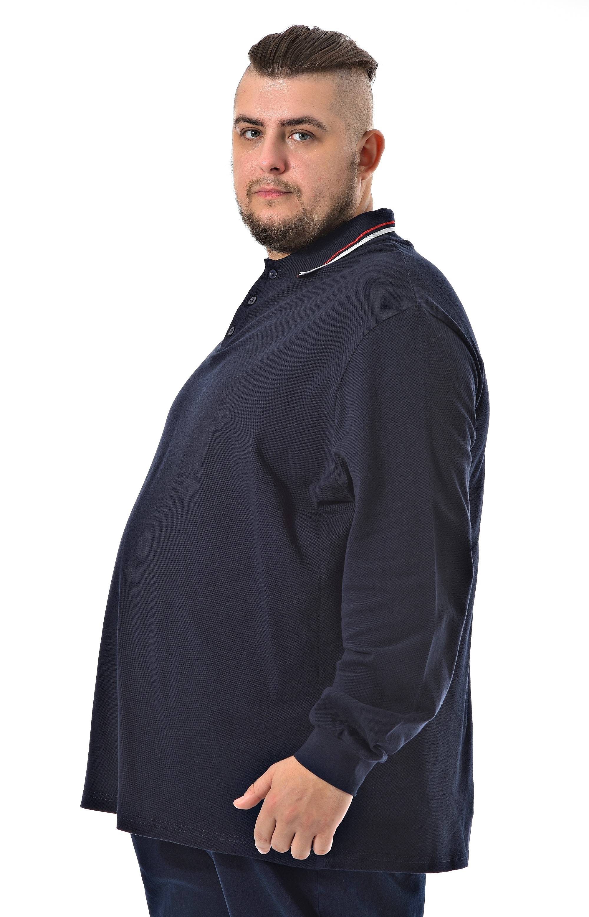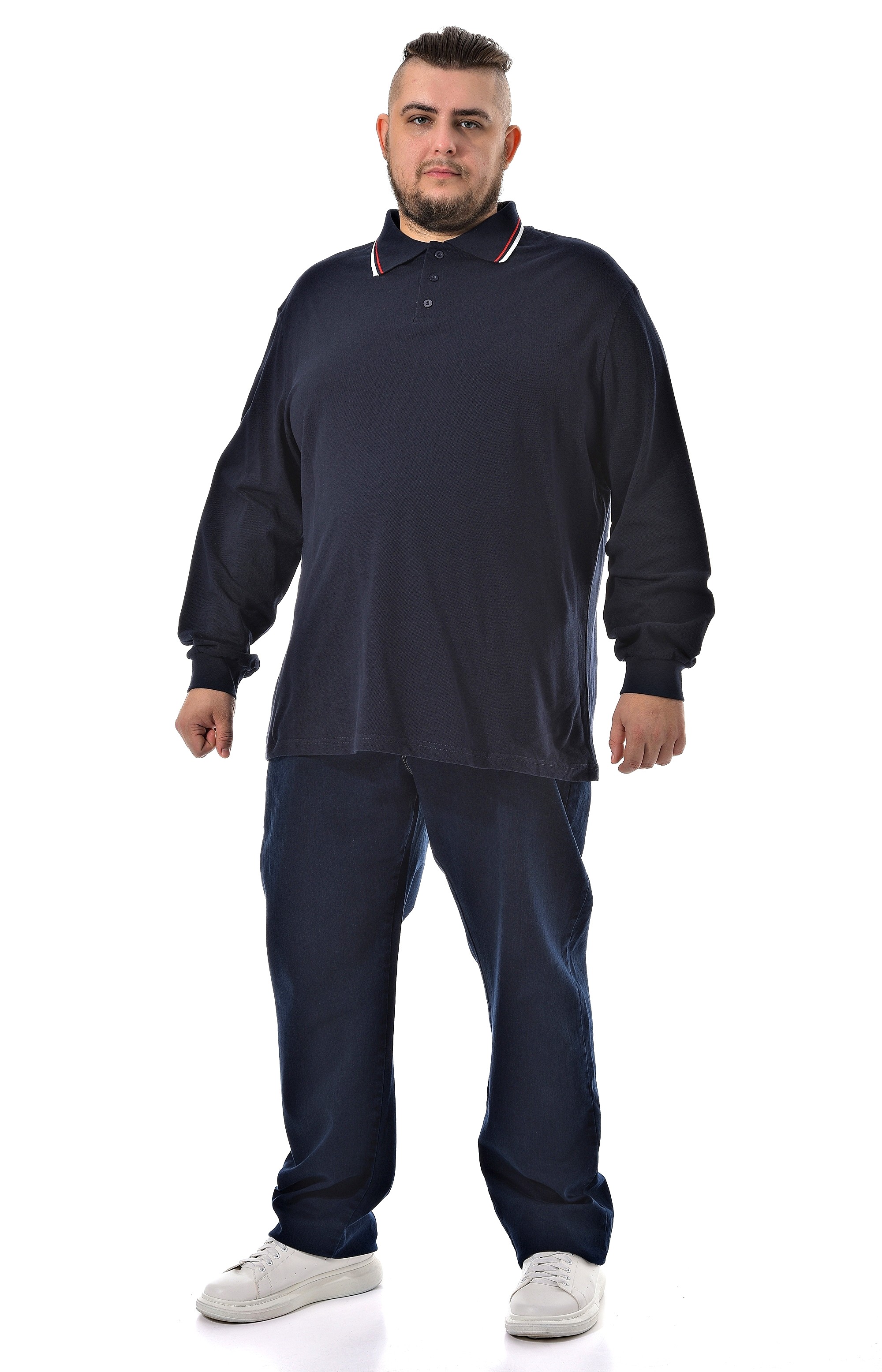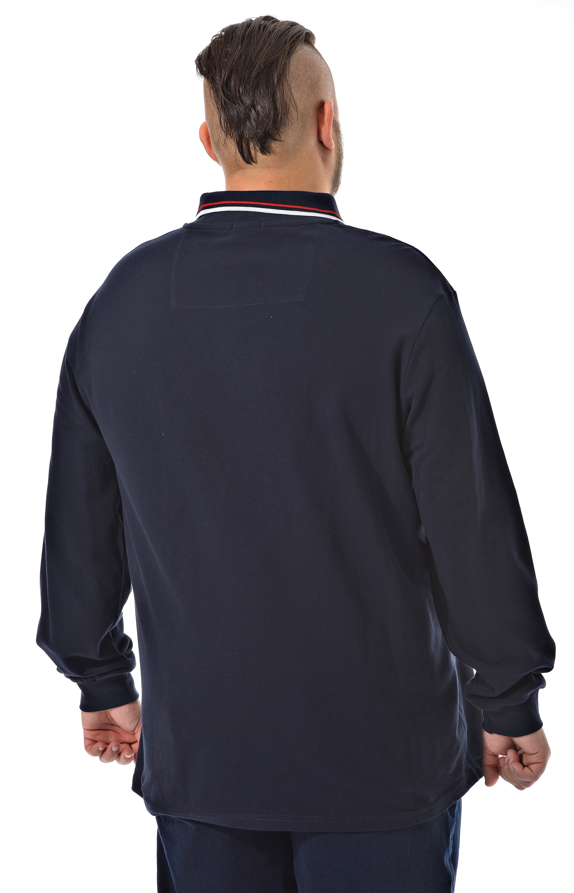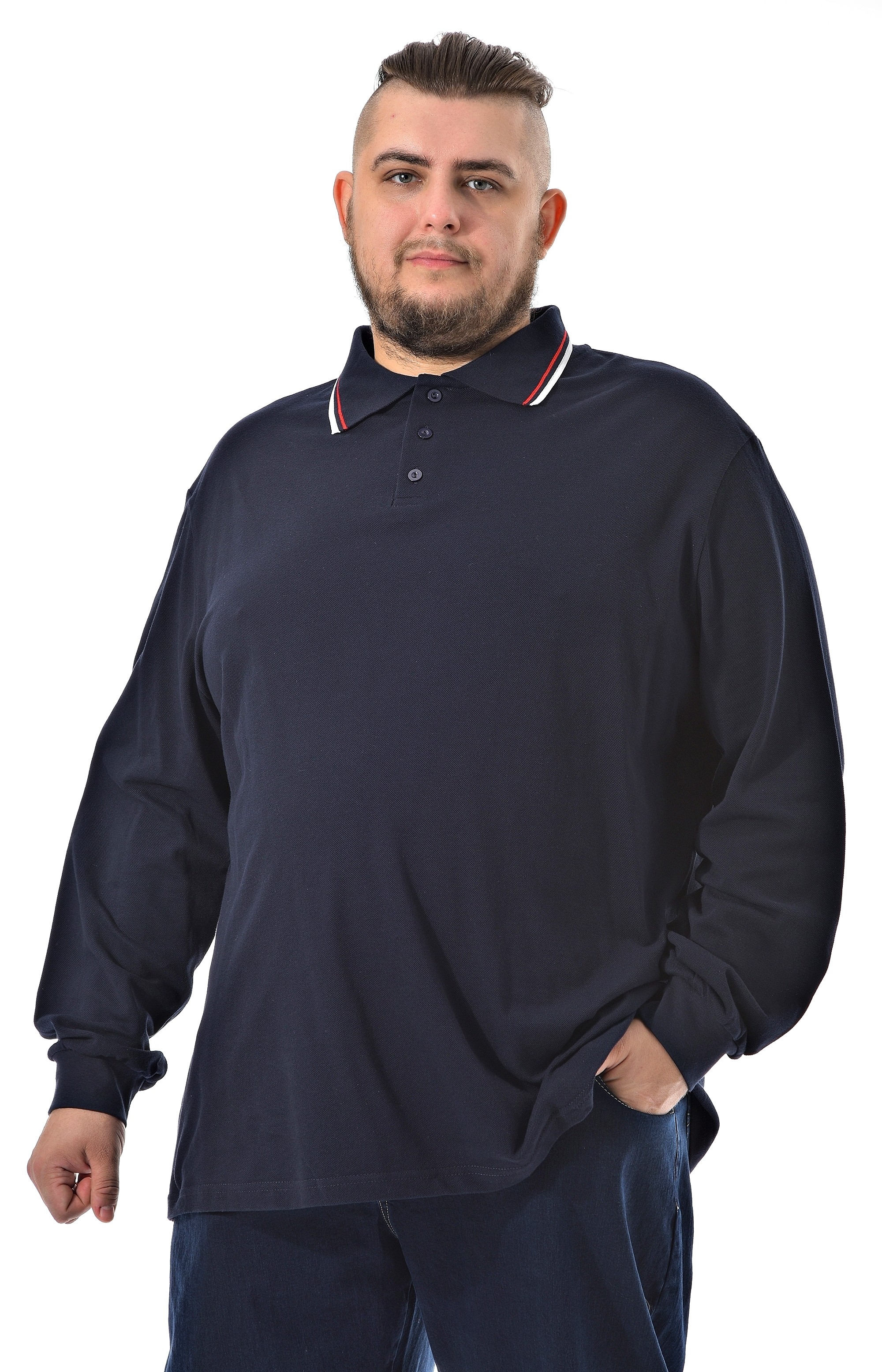 Оригинальная мужская тенниска от бренда "Большие люди" позволит создать стильный образ для работы, прогулки, отдыха. Тёмно-синяя тенниска с длинным рукавом на манжете. Ткань "пике" (лакоста) 100% хлопок. Контрастная отделка по воротнику. Застежка на три пуговицы. Модель, свободно сидит по фигуре, не сковывает движения.