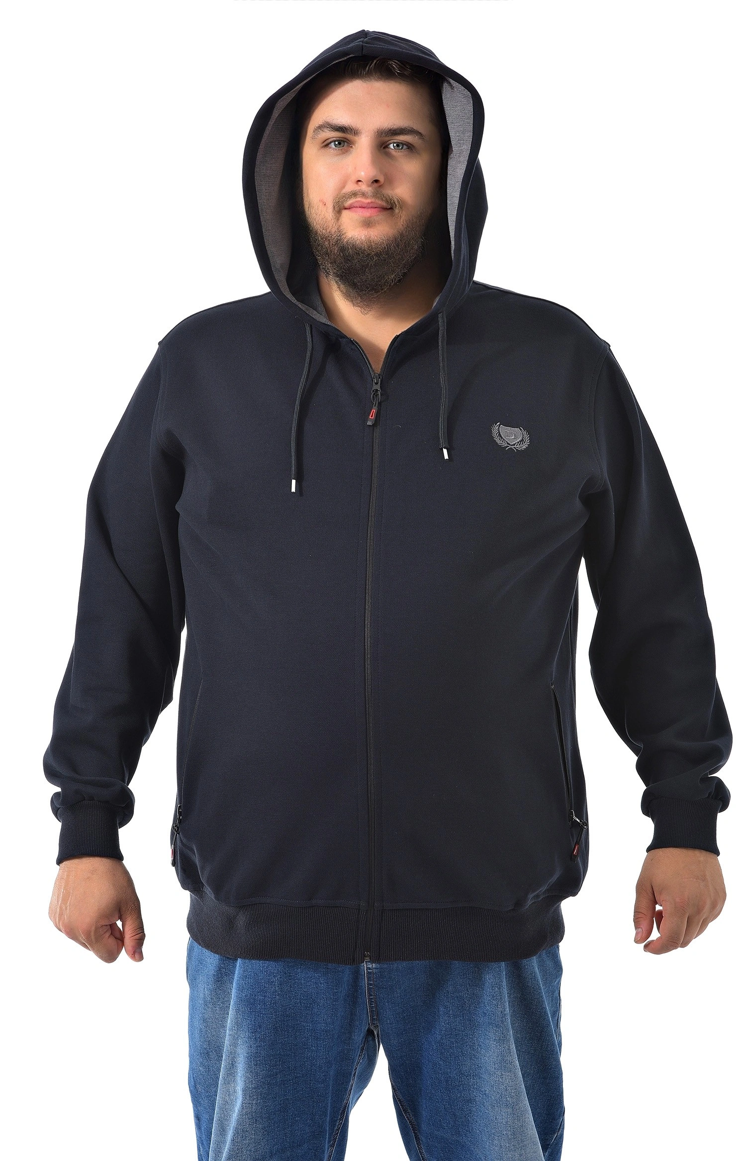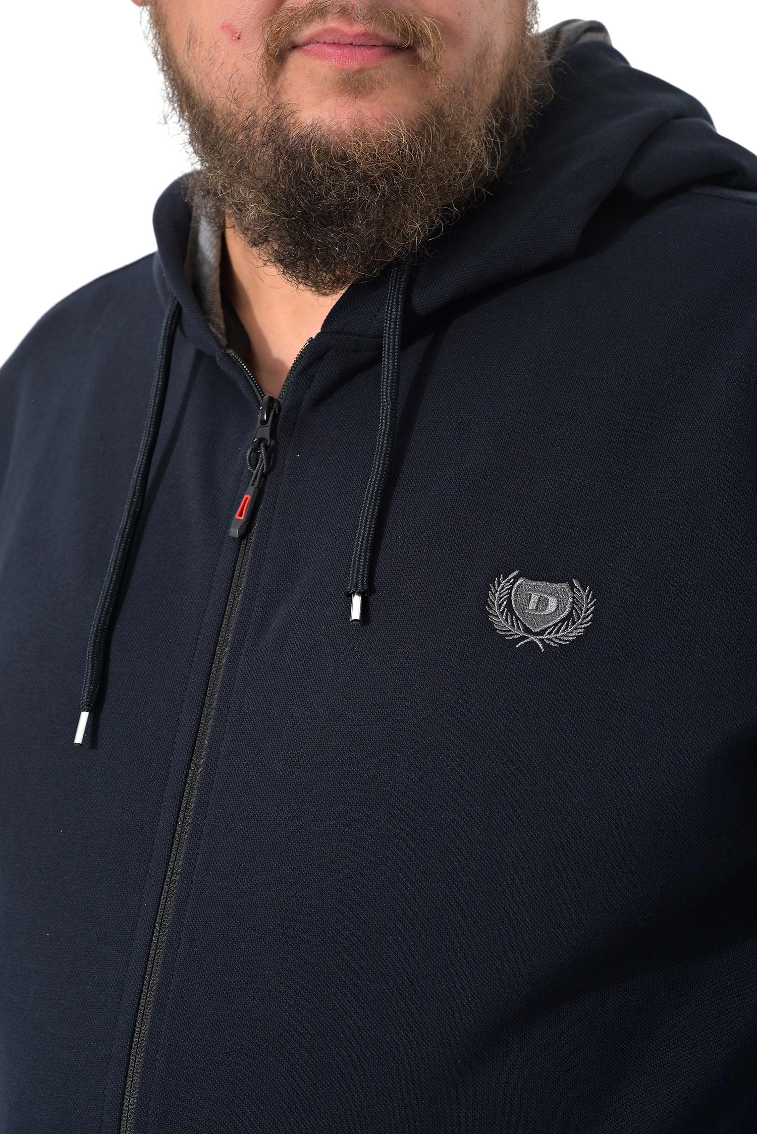 Мужская толстовка DEKON"S темно-синего цвета. Застежка на молнию. Небольшая вышивка логотипа на груди.