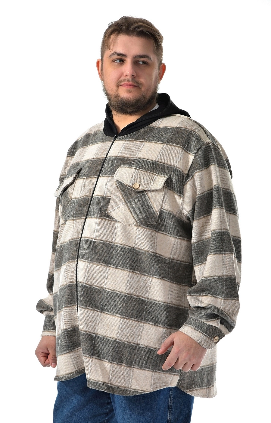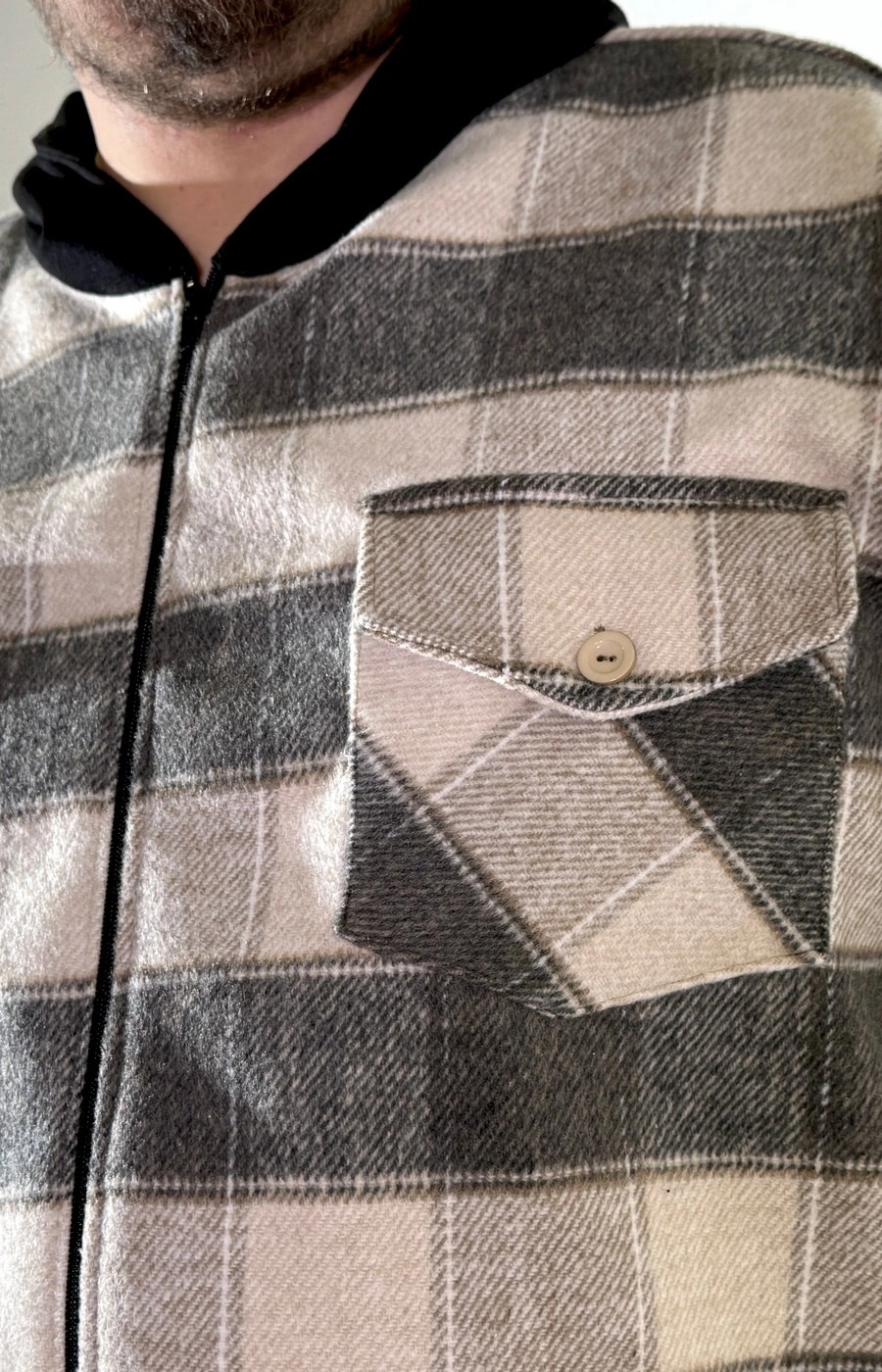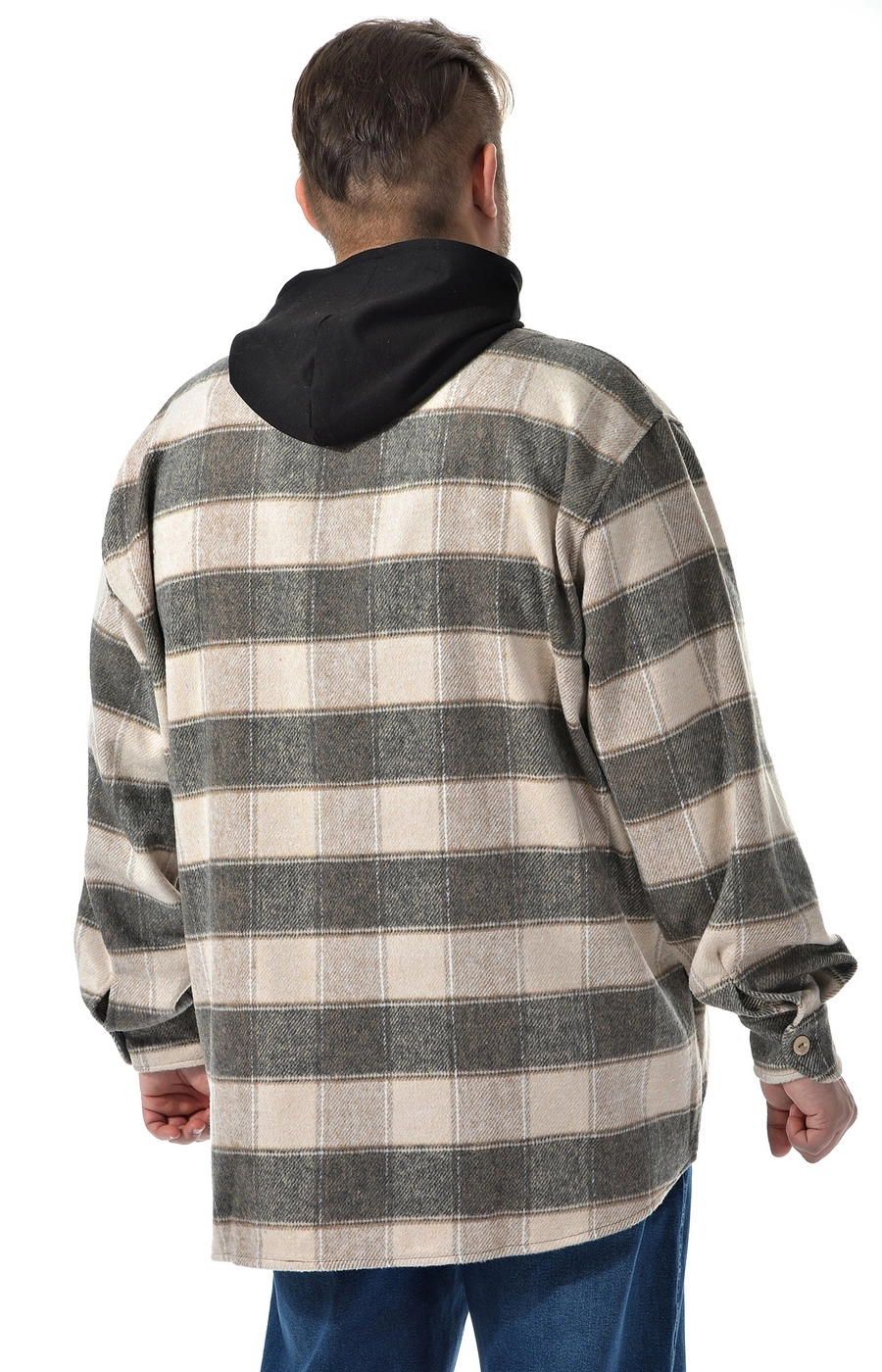 Рубашка ветровка серо бежевая в клетку / Большие люди / 22221422
